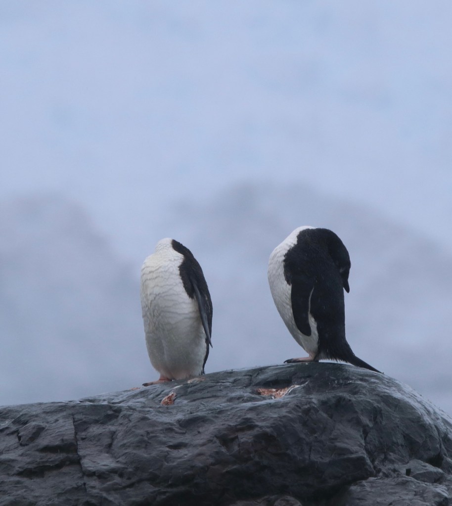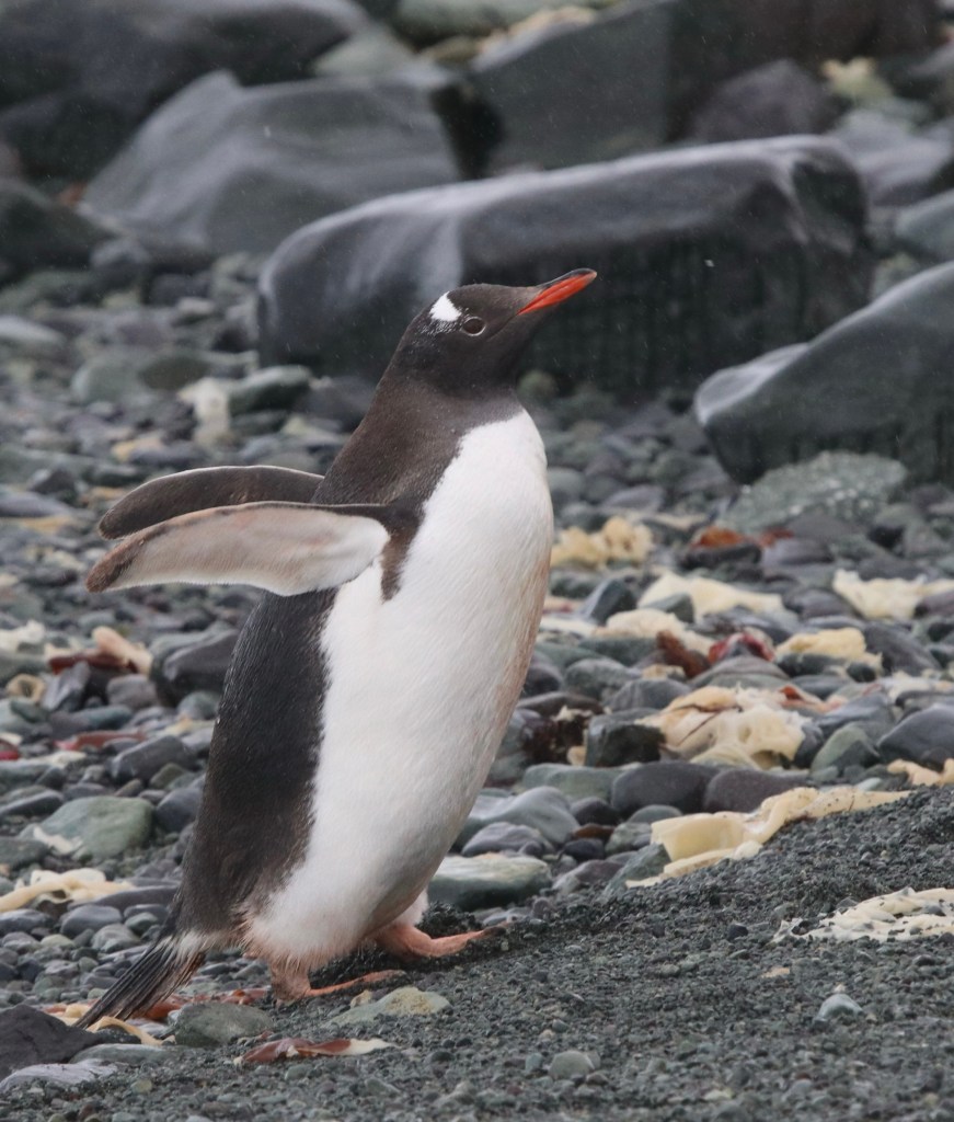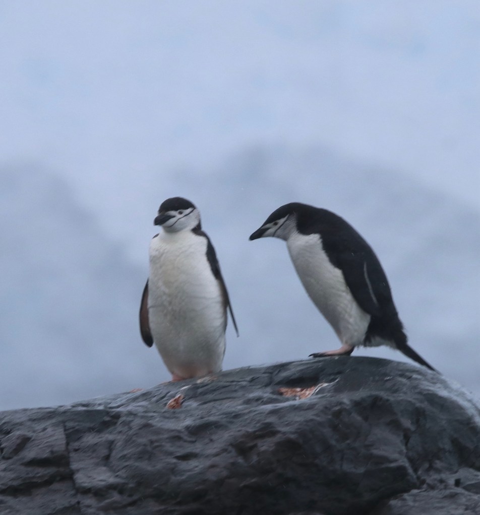 As we left on zodiacs to return to the ship a couple of Chin Strap penguins were identified on a nearby rock. These are distinguished from the Gentoos by a black ‘chin strap’ line that keeps their black cap on in the wind! And no orange bill or feet.
