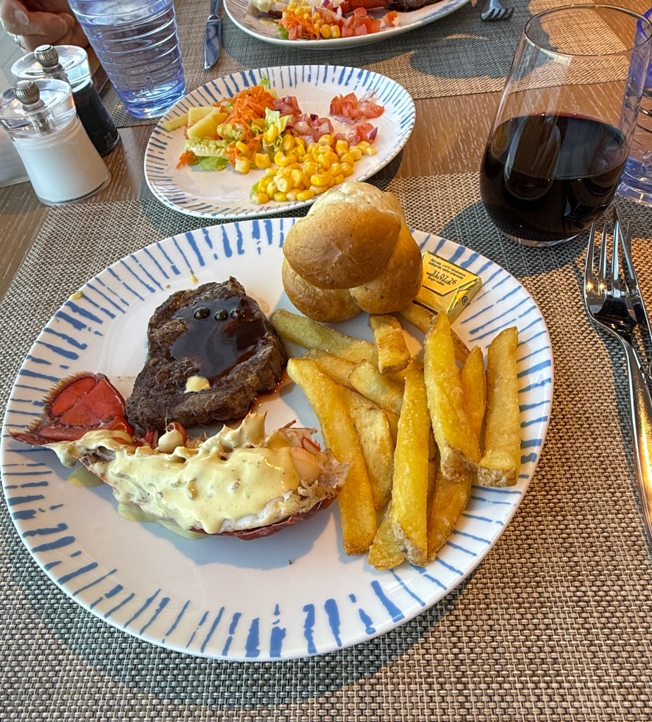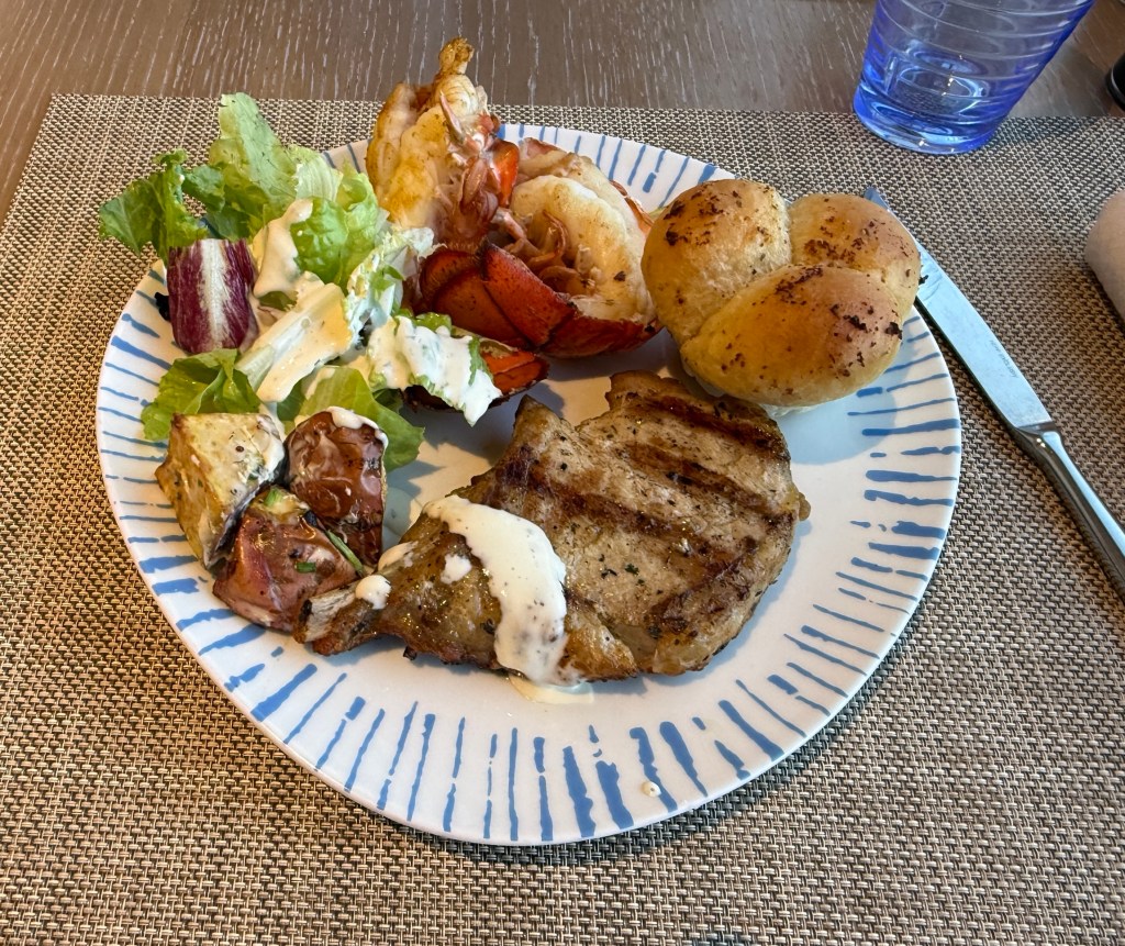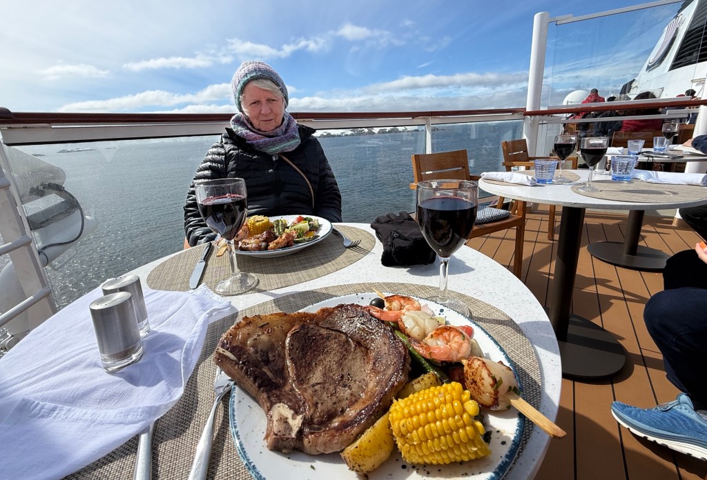 Lunch aboard the ship was an open deck BBQ. Quite a spread of meats and seafood.