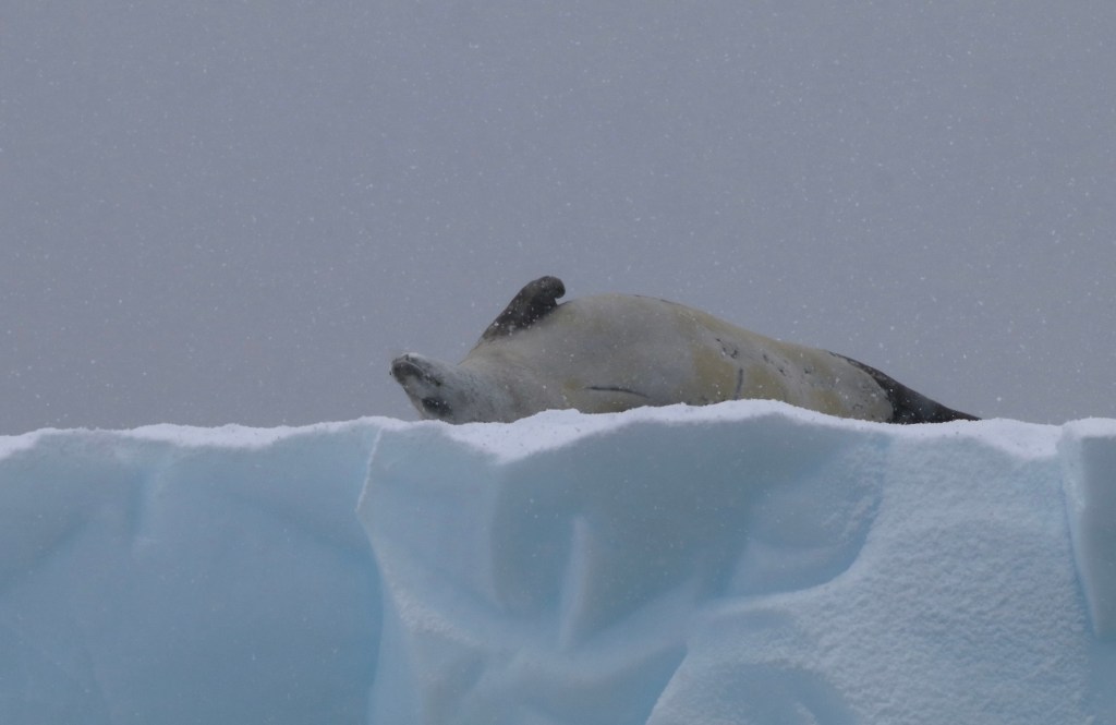 We had numerous humpback whale sightings. While having seen humpbacks in action before, witnessing them motoring along arching their backs, diving and waving their tails with a backdrop of snow and ice is a wonderful sight.