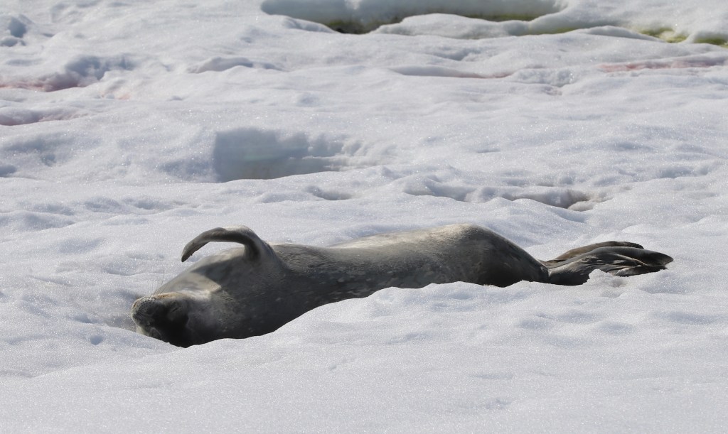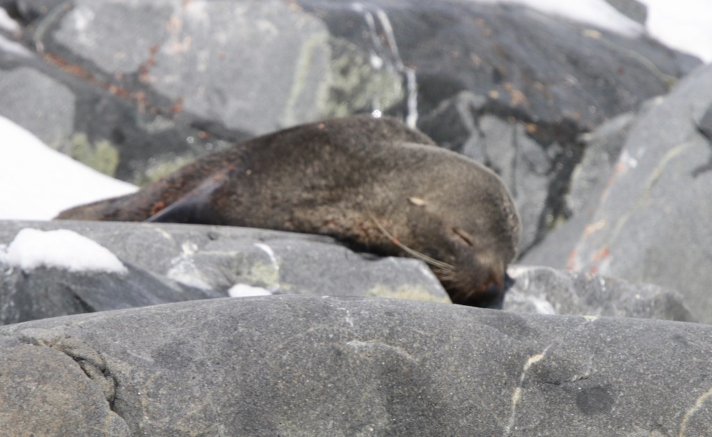 The expedition team had prepared a circular pathway around the spit of land known as Meusnier Point. Took us about forty minutes to stroll around with regular stops to take in the landscape and the sluggish Weddell seals.