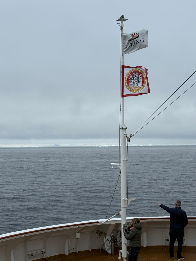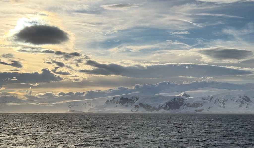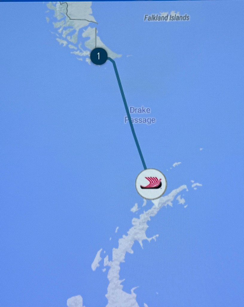 During the middle of the night things got a little rocky in the Drake Passage. By morning the sea had calmed and the sun peaked through the clouds for a while. It retreated before lunch and the light rain returned with seas of about three metres coming in from the west. The ship performed well with all onboard ok.