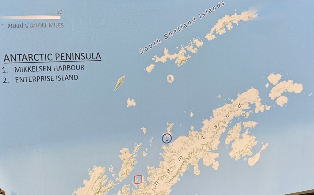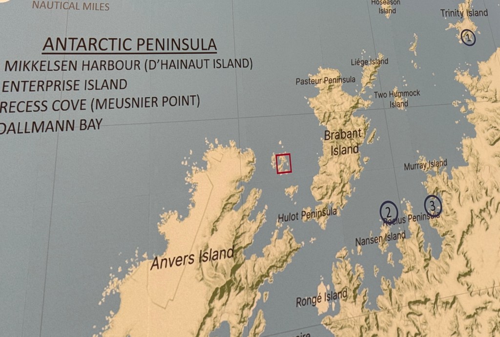The evening before we moved on from Recess Cove towards Dallmann Bay, the red square on the map, which lies between Anvers and Brabant Islands. The bay was named after a German whaler captain who explored and chartered the area in the mid 1870s.