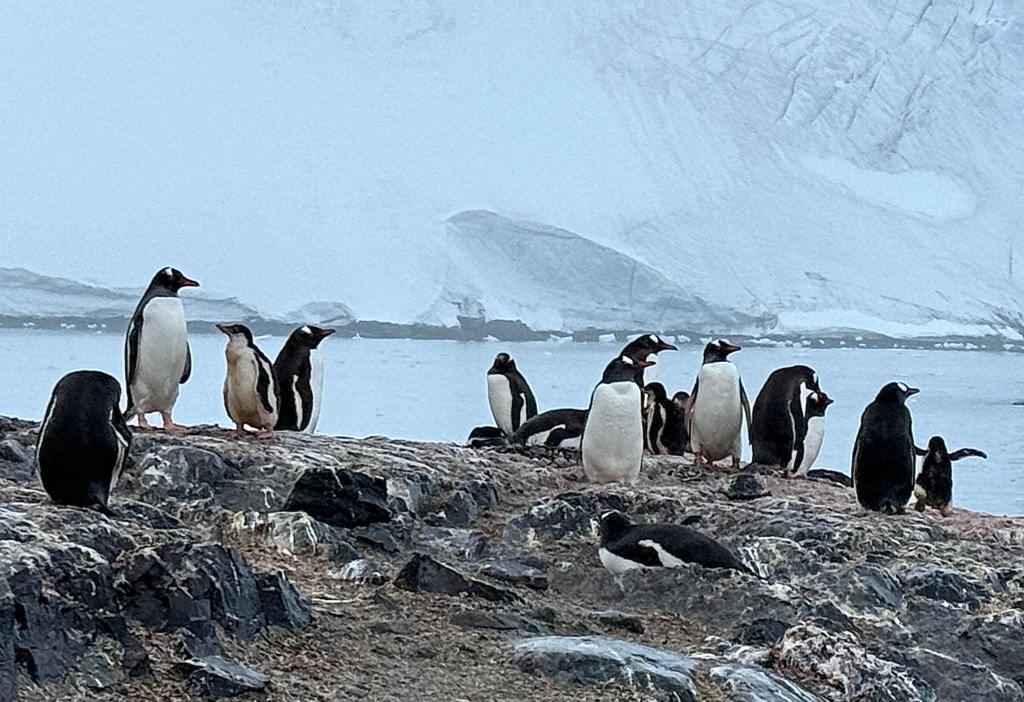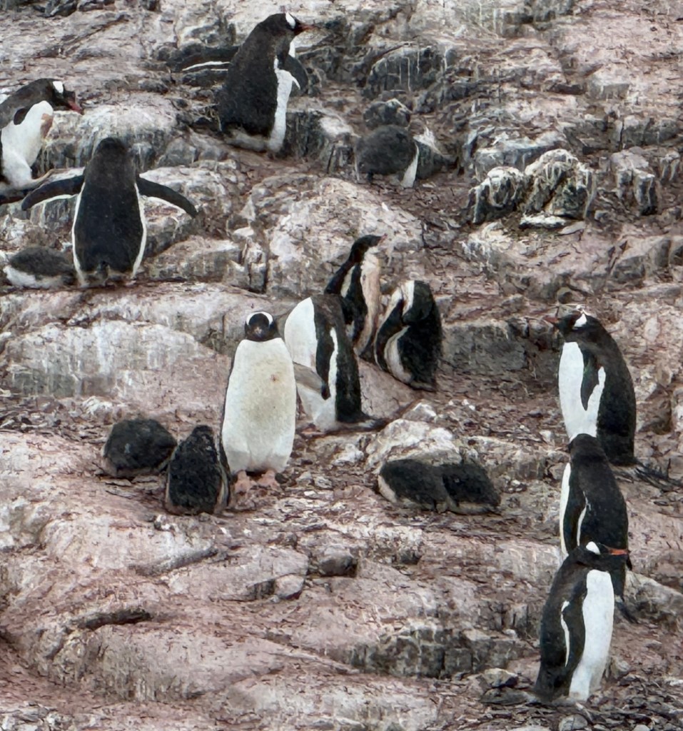 The landing spot has a lot less snow than the others we have stopped at, the path leads uphill from the shore in a series of S bends to get to the Gentoo colony. A bit slippery in spots and some of our group had a couple of falls. Not easy going particularly downhill.