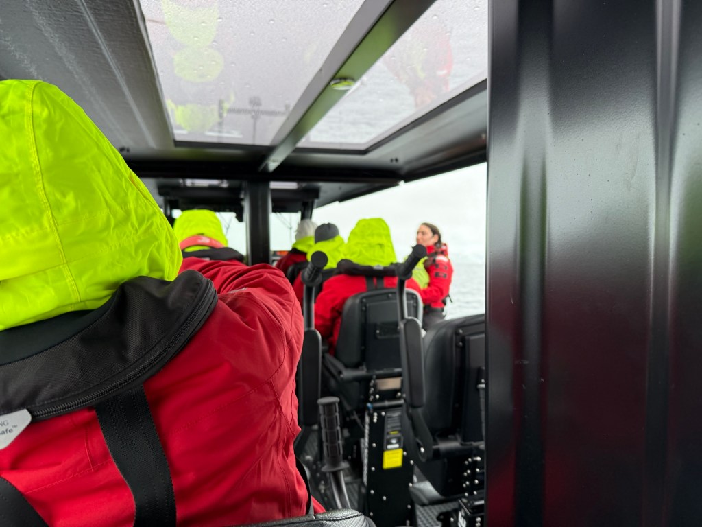 Good experience bumping along on the slight swell in between ice bergs and the steep shoreline.