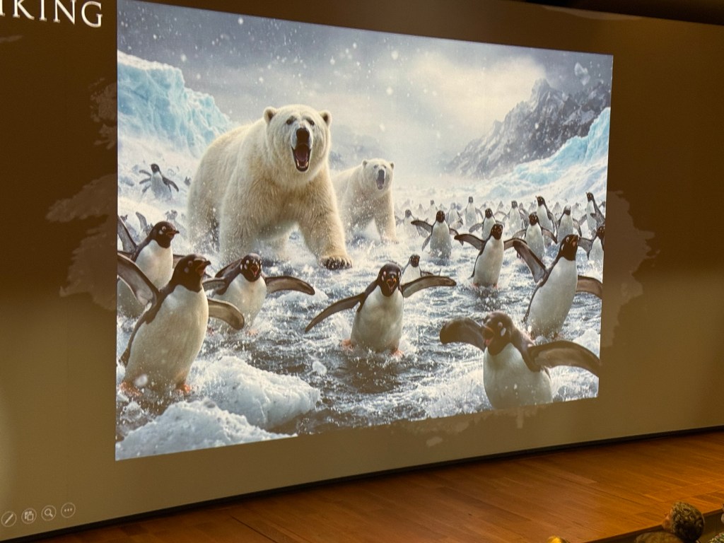 We had a short talk before dinner on what might happen if polar bears reached Antartica. The conclusion wasn’t pretty, a bit Jurassic Park like. The penguins would be in trouble big time!
