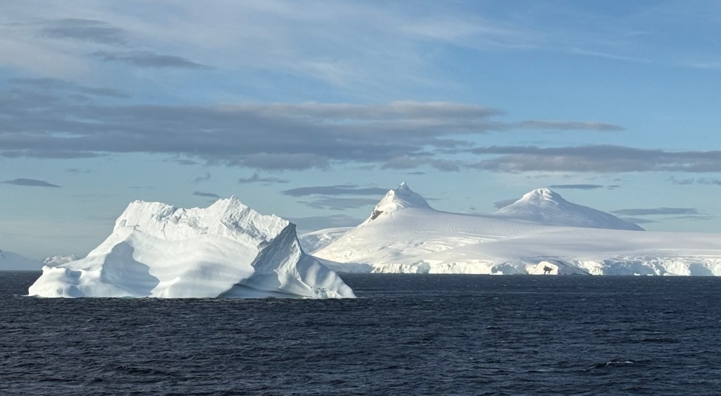 It takes a day and a bit to get across the Passage to the Peninsula where will spend seven days making landings in various spots for wildlife sightings etc. Cruises also go down from Hobart to the Australian side of Antarctica but take much longer to get there, six to seven days. The landscape on the Australian side is also totally different, great expanses of flat land, snow and ice rising out of the sea. Icebergs tend to be flat and of great size. Whereas, on the Argentina side the landscape is more mountainous, with craggy peaks and glaciers. The icebergs are also more irregular and of smaller size.