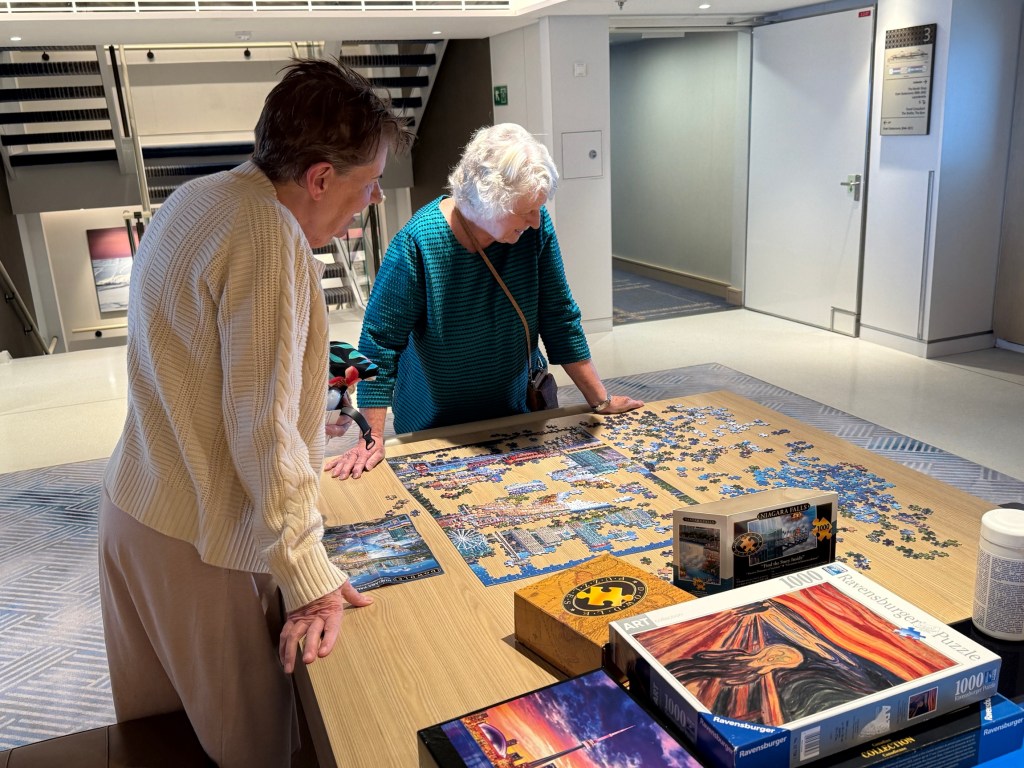 A bit of rock and rolling doesn’t worry us. We are in cabin 3003 which is at the front of the bow. So the swells get us both ways, the bow dipping into the sea and also rolling a bit as the swell comes across our course. Generally, we like being in the middle of a ship, tends to minimise these issues.