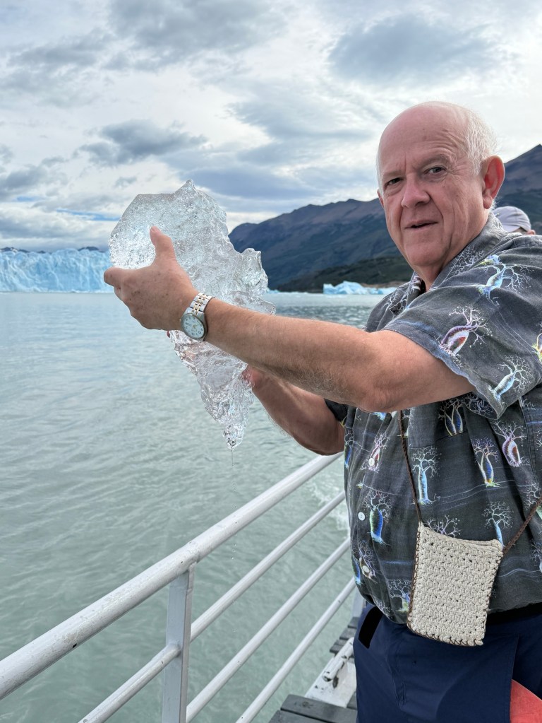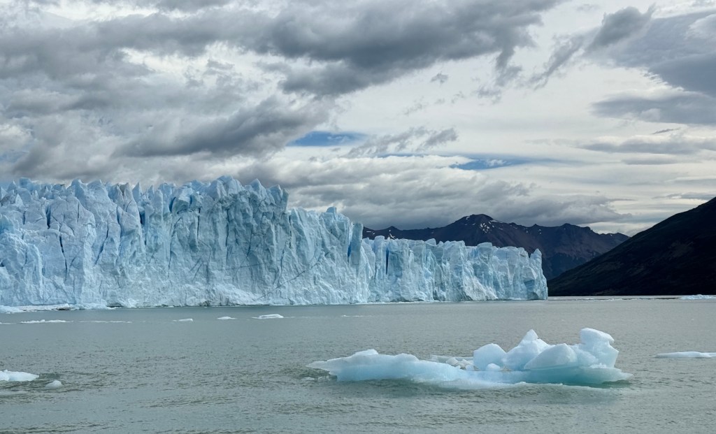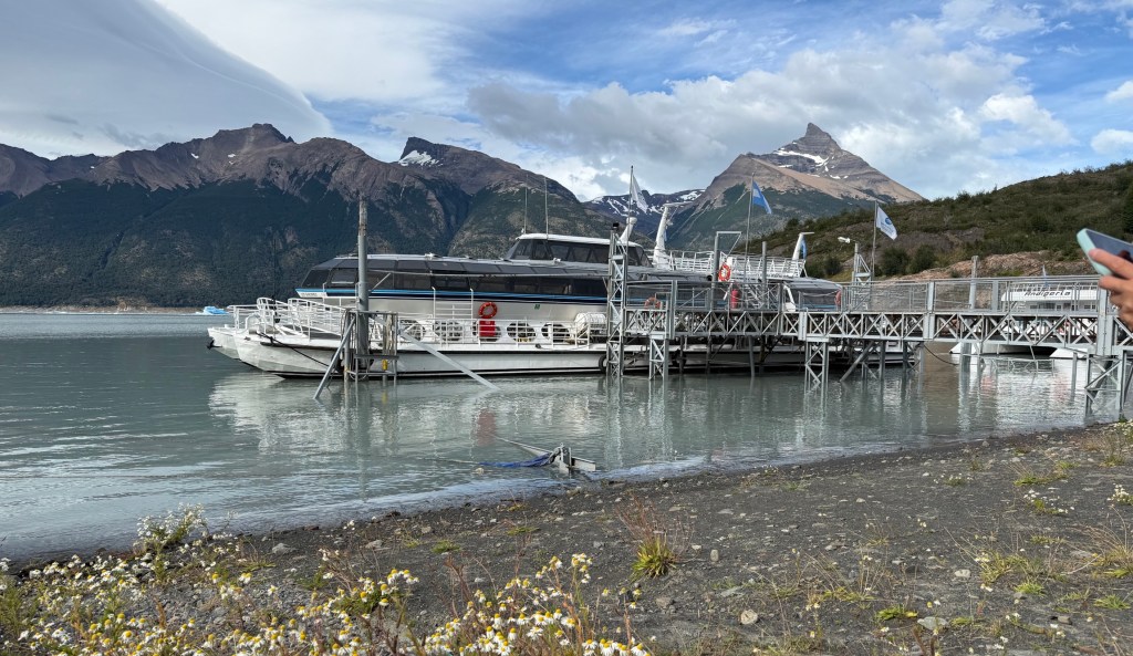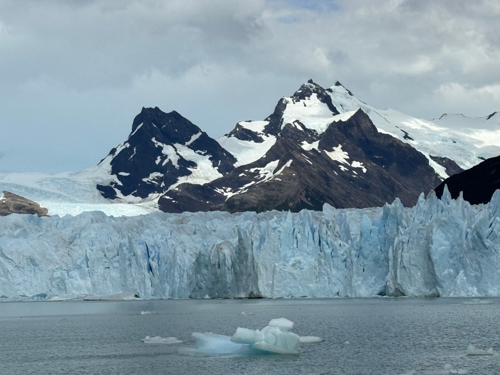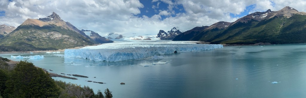 The glacier is about 80 km south west from El Calafate and our bus takes an hour and a half to get there. It is a big glacier flowing off the Patagonian Ice Field into Lake Argentina. For two or so hundred years up until about 2020 the glacier had been relatively stable, periodically retreating and advancing, but it now appears in full retreat. It is 30km long and the ice formation is over 250 square km.