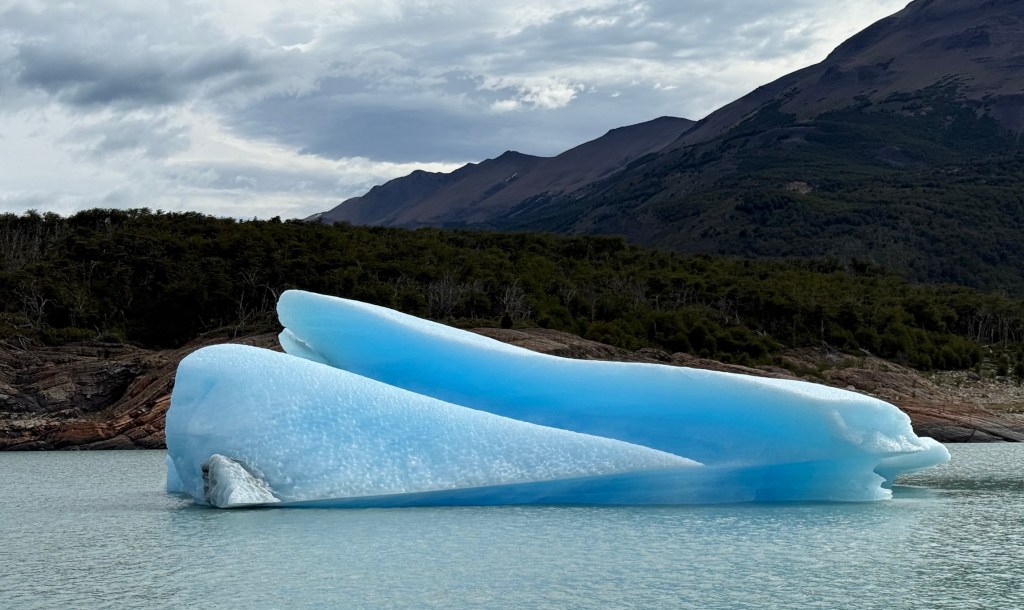 If one pauses and listens the ice mass ‘groans and grunts’, regularly calving into the lake.