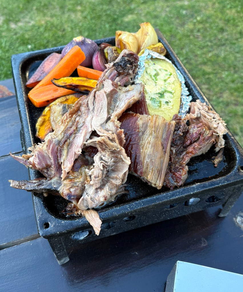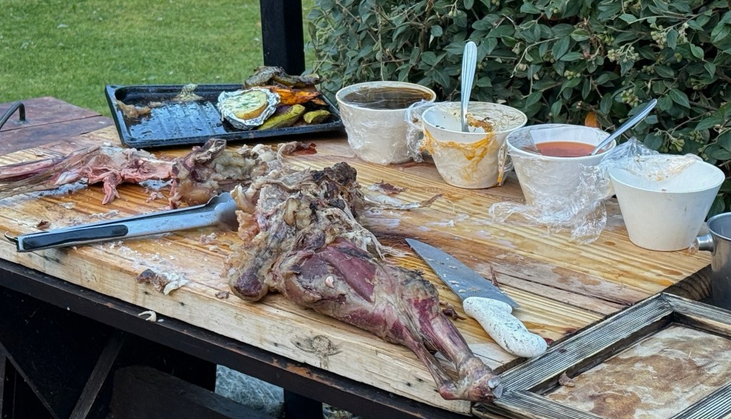Dinner that evening was a taste of the local delicacy. BBQ lamb and roast veggies, preceded by a couple of empanadas. Quite a process this BBQ, pictures tell the story! Some folk dancing finished the night off.