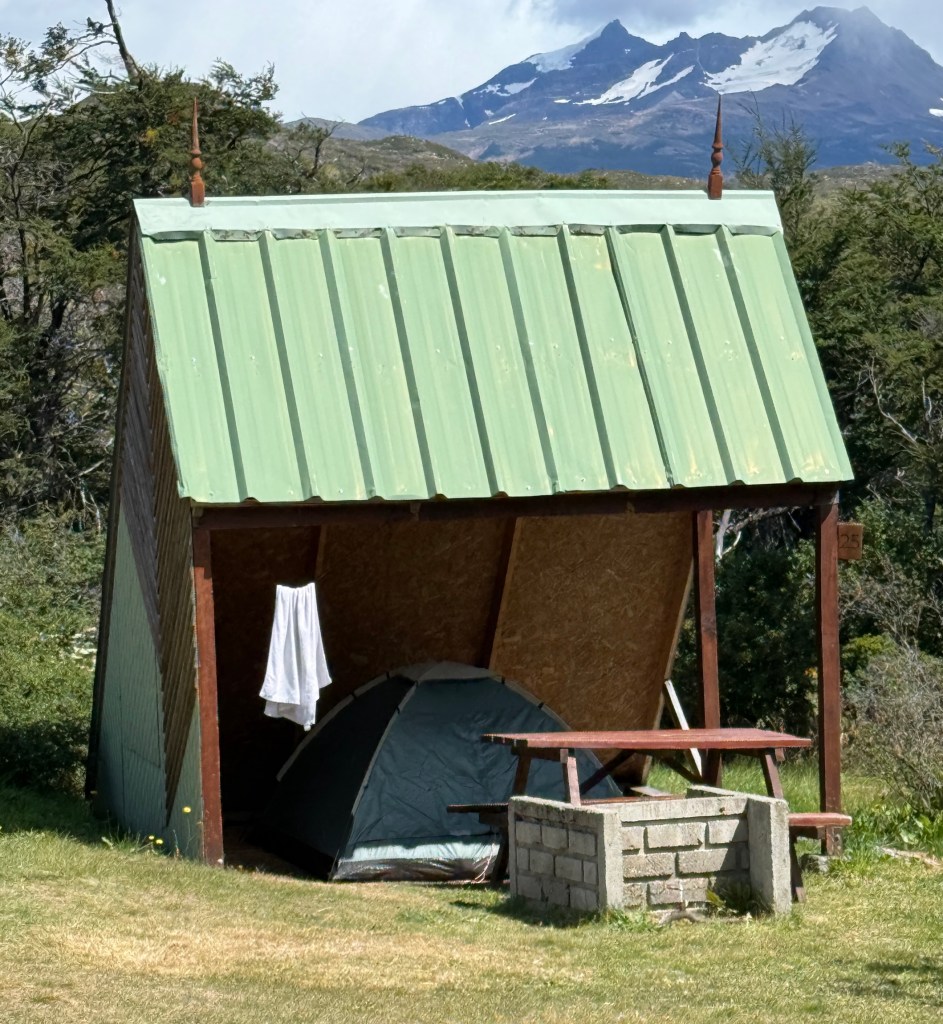 Well appointed camping areas are a feature of the NP, a little chilly at night I suspect, small fires are allowed in the enclosed fire pits adjacent to the covered tent sites. We stopped in one for a picnic lunch with the towers a backdrop.