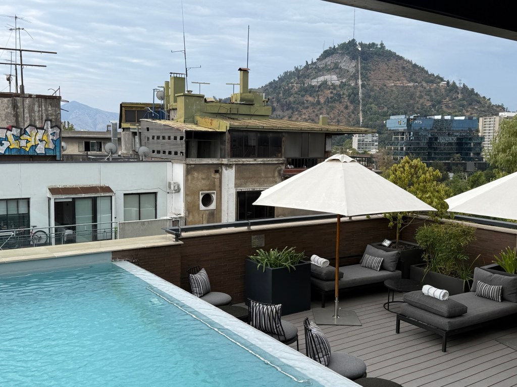 There is a nice roof top bar and restaurant with some views out over the older parts of the city. Eight million people live here, Chile has a population of eighteen million.