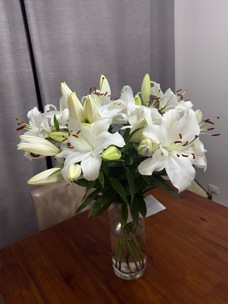 We awoke the today to another clear sunny day, this was our big day fifty years ago. Thirty degrees promised today. I don’t remember what it was like fifty years ago, but it would certainly have been chillier in Orange. A slow morning before lunch looking out the windows.