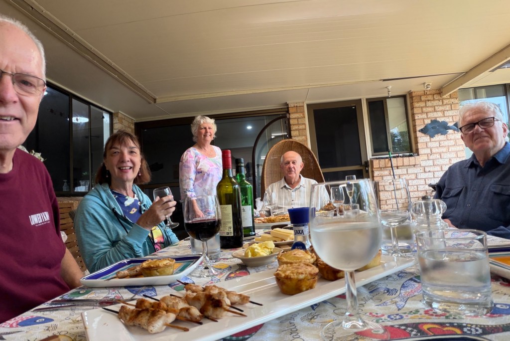 We had planned dinner at the Rainbow Bay Surf Club last night. This is a bit of an institution here and locals are upset about the Council’s redevelopment plans for the site. Redevelopment not only leads to smarter facilities for the Club but also higher rents and then higher prices for the members etc etc. no longer that nice noisy, homely place they all love.