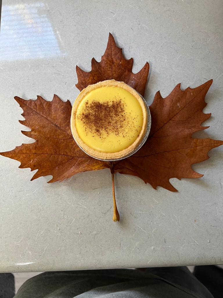 Great little caravan park not far from the centre of town, plenty of trees around us in full colour. Not to mention an enticing bakery. There was a choice of two sizes in custard tarts, a big one (the normal size I suppose) and a slightly smaller one. Allthego selected the larger one because it is shared with Homealone. Not a bad tart….there was a splash of nutmeg rather than a dusting which made it distinctive. Quite tasty. Nice and firm.