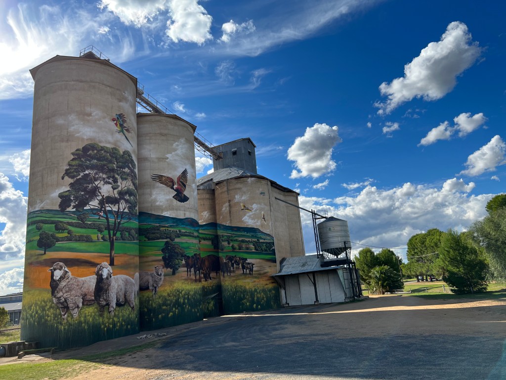 The latest tourist magnet for the town is a painted grain silo. A bit of a gem this is and something to be admired. How these artists paint these panoramic instatallations is amazing, they are only feet from the silo and several metres above the ground, with paint brushes and cans of spray paint. How do they get the perspective? Allthego sent the drone up for a photo, getting a different angle.