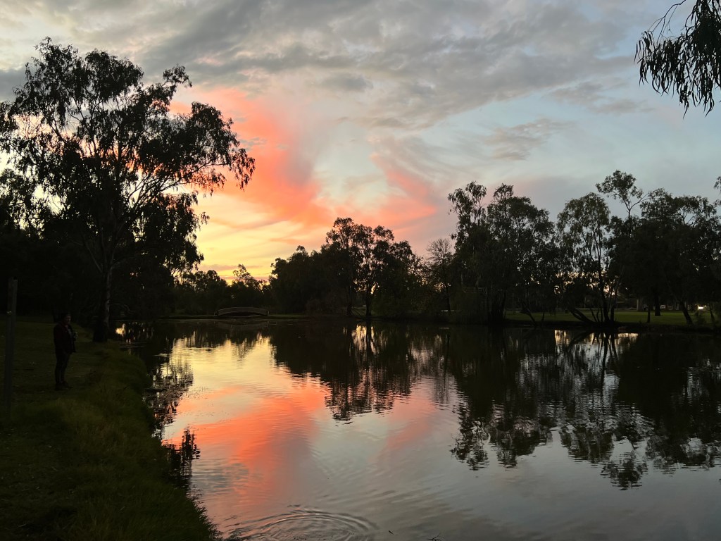 Down in Forbes we are beside the Forbes Lake in the free camp along with a number of other vans of all shapes and sizes. It is a pretty spot with the sun going down throwing up a colourful sunset, last time we were here we looked across the lake at a huge dust storm. It turned out that Leanne’s brother Stuart and his wife Maree were in town visiting Maree’s father Bob. All three joined us for a short happy hour as the sun started to go down. Nearly three years since we had last seen them.