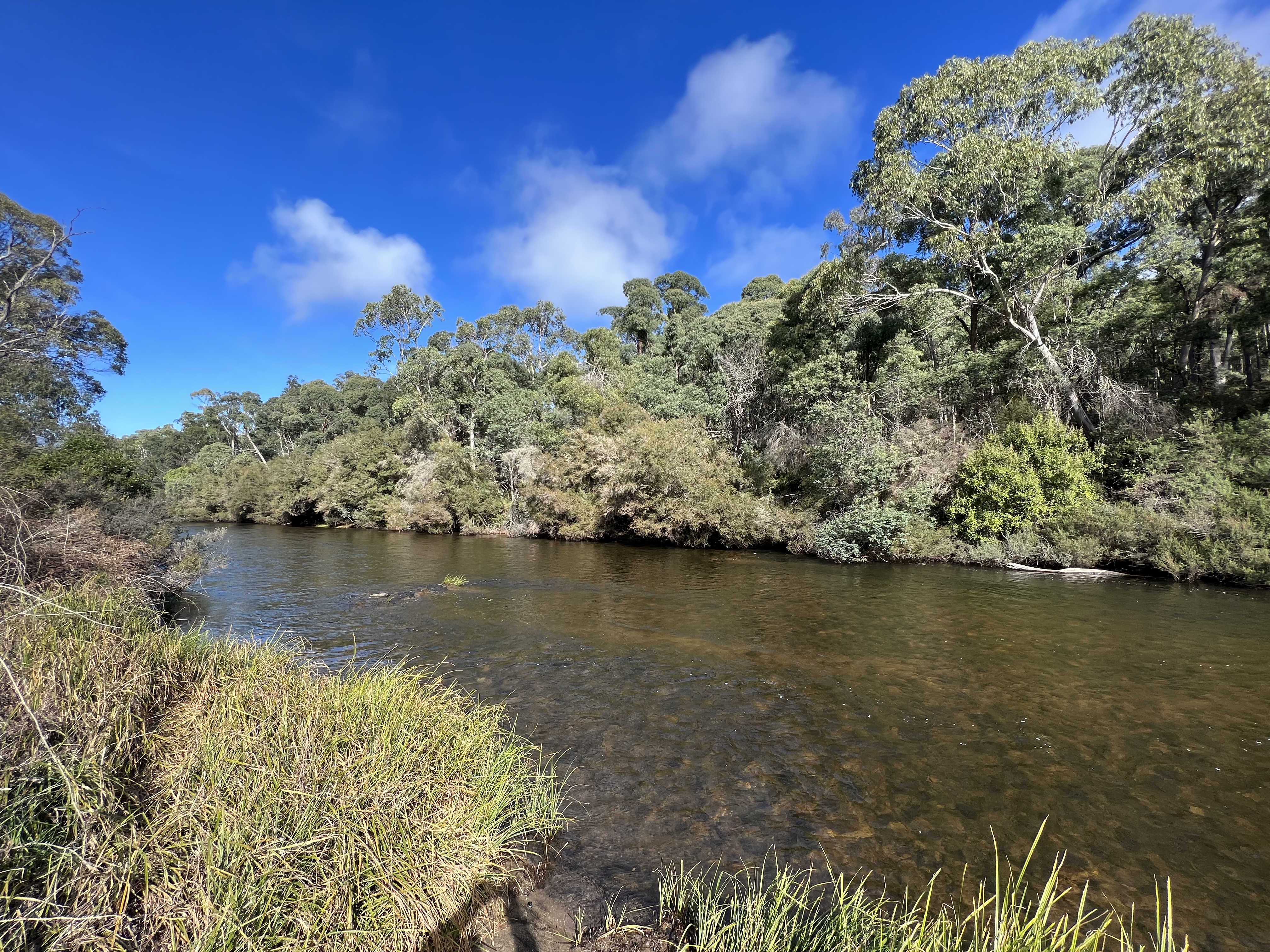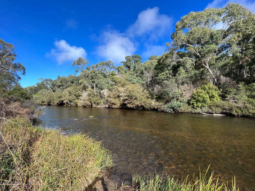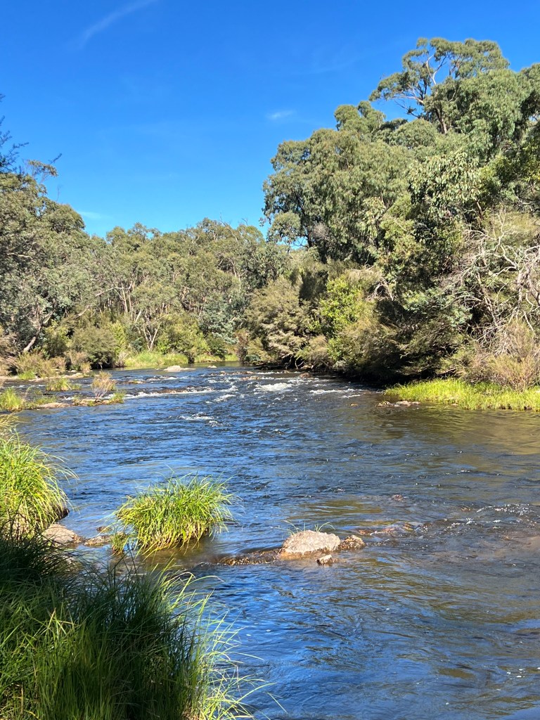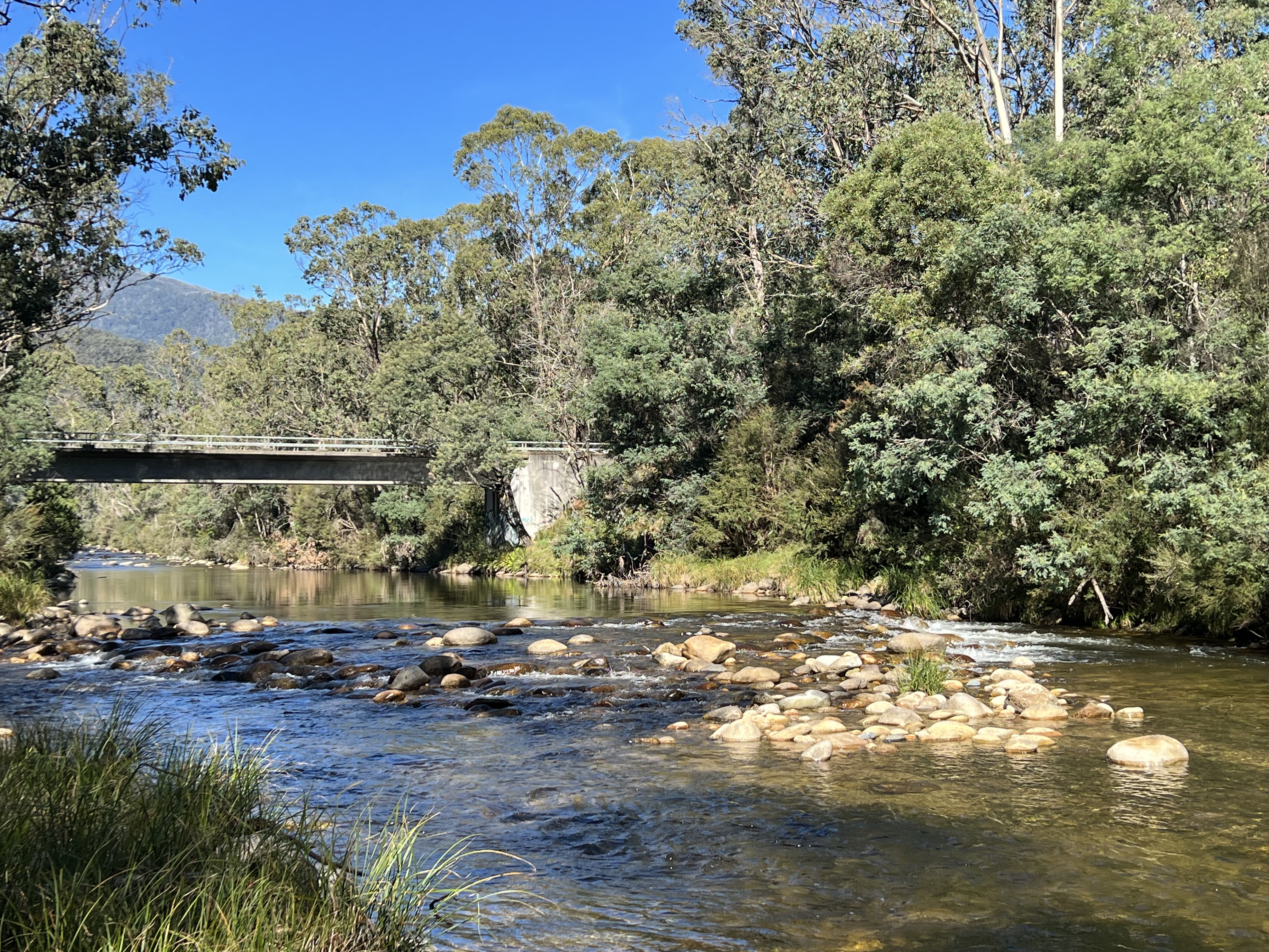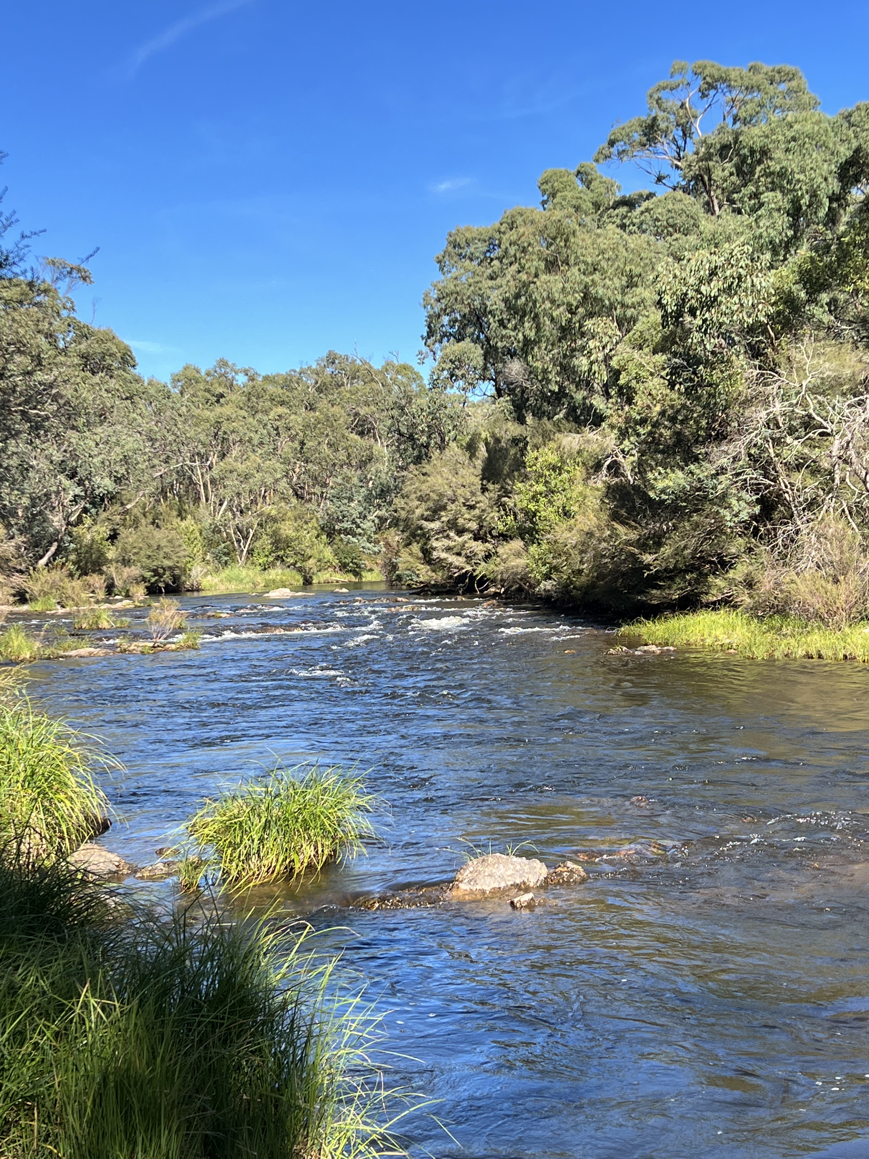 The river at Tom Groggin is swift flowing and only a metre or so deep, but it is a great spot, smoother flowing waters upstream and some mini rapids below the campground. All very tame though.