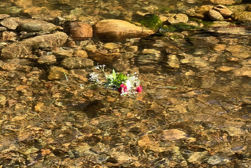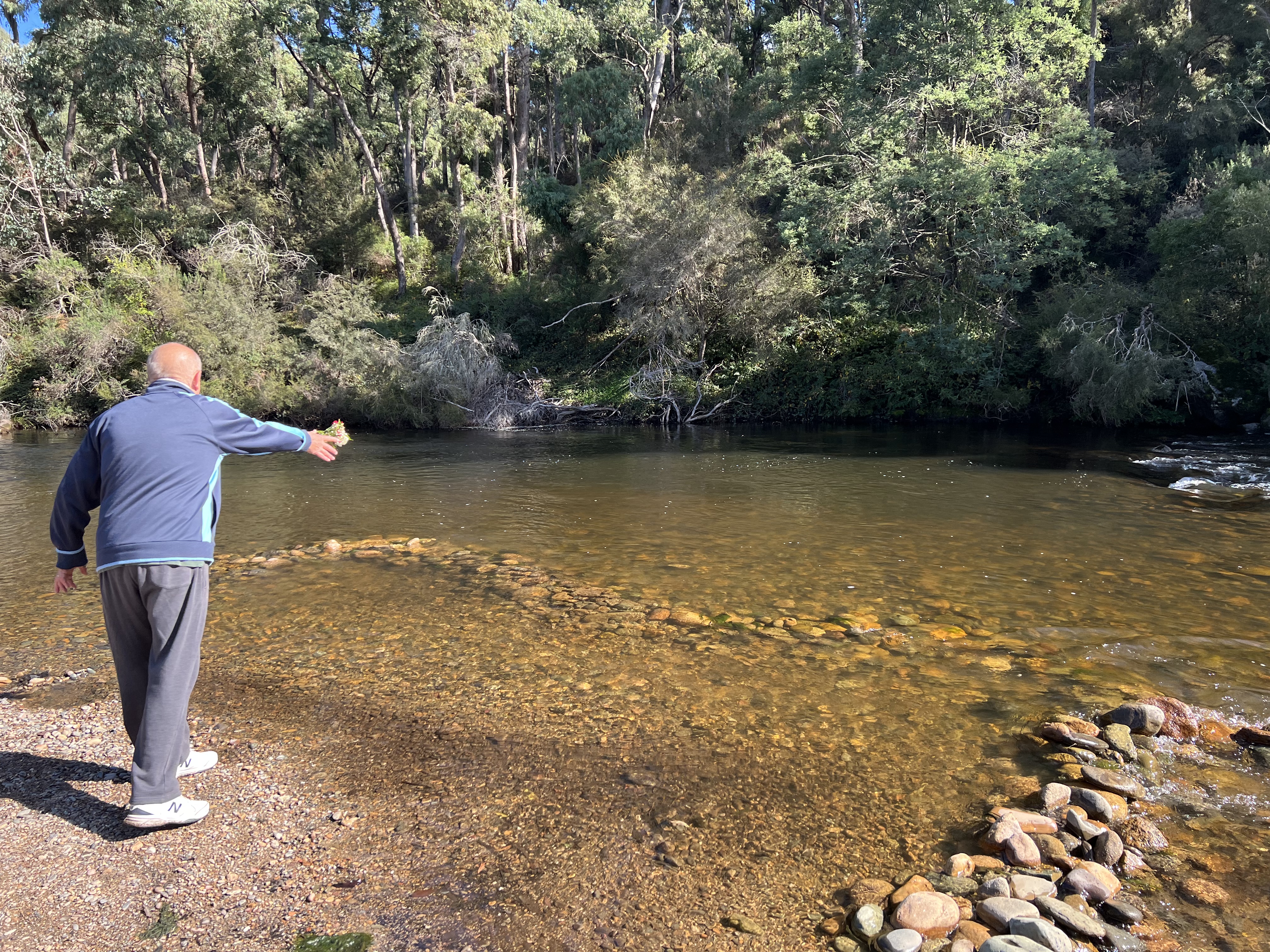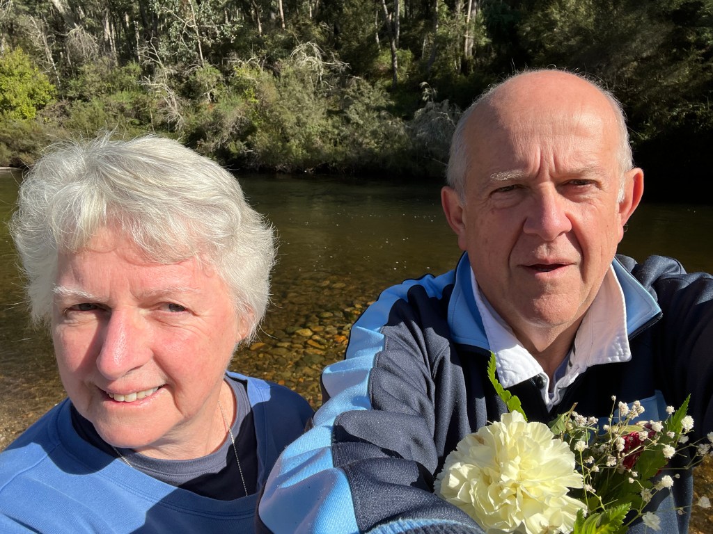 A couple of days before we set off on this journey it was the time of our wedding anniversary. The old romantic had picked up some flowers to help celebrate the occasion. The flowers proved resiliant and Allthego thought it appropriate to take them on the road. As might be expected thay withered and at Tom Groggin it was acknowledged that their time had come. So Allthego tossed them into the Murray and they set off on a long passage to the sea in South Australia. Maybe they would wash onto a bank along the way and we would stumble upon them?