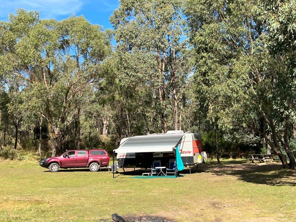 We had the campground at Tom Groggin mostly to ourselves, a couple of other campers were there, but they came and went after a night stopover. The campground is the most accesable point to the Murray River from its source which is more than several km further upstream in the vicinity of ‘The Pilot’, a 1580m peak that sits out on its own. One can drive up a bit closer on mountain tracks but then face an overnight hike to the source at what is known as the ‘Indi’ spring.