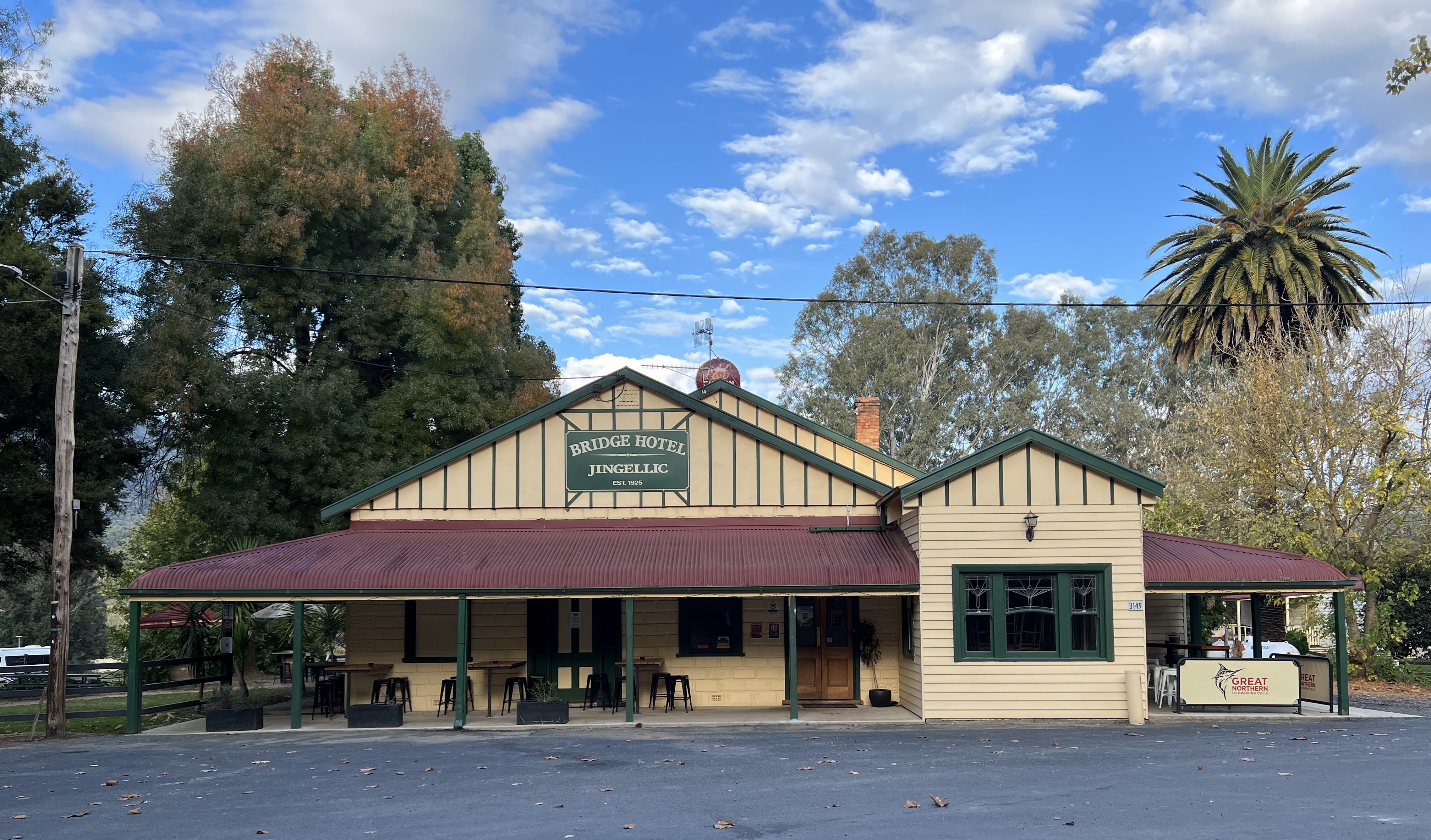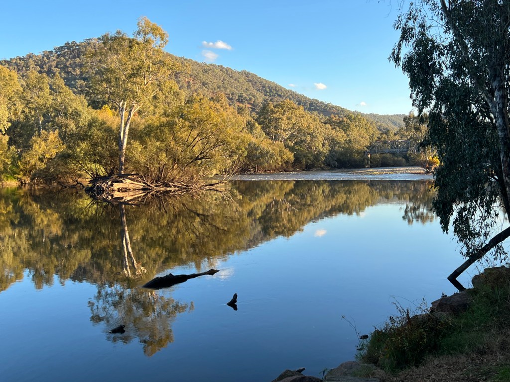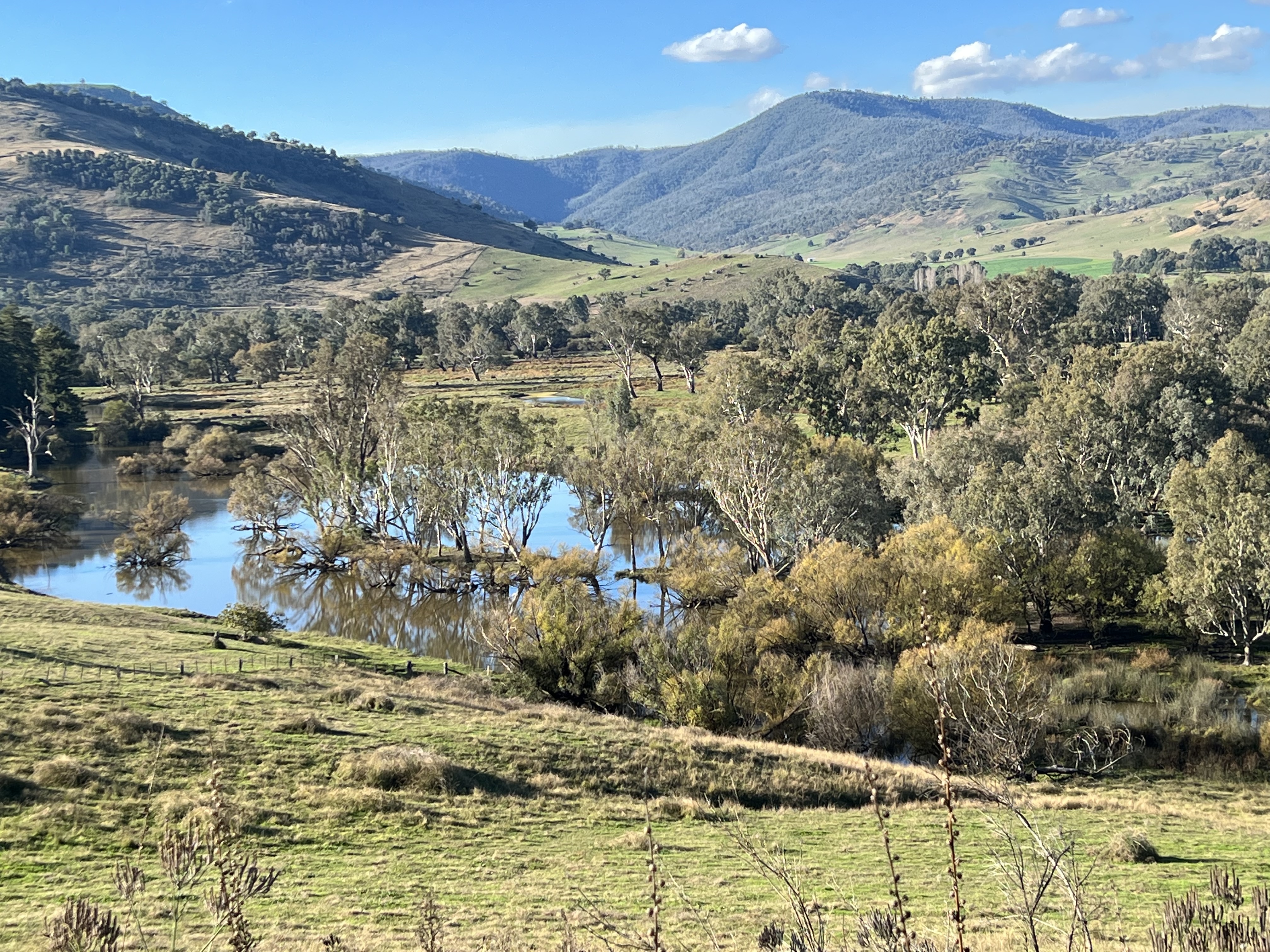 We stop about half way along the route at Jingellic in a free camp on the river, below the Bridge Hotel. This is a great spot beside the river and a short walk to the hotel for a country meal of steak and pork chops. The pub seems to thrive off the grey nomads camped by the river. Grey nomads love to hunt out a free camp, but are then happy to lash out at the nearby pub on steaks and other stuff! One of the great ironies of travelling in the van!