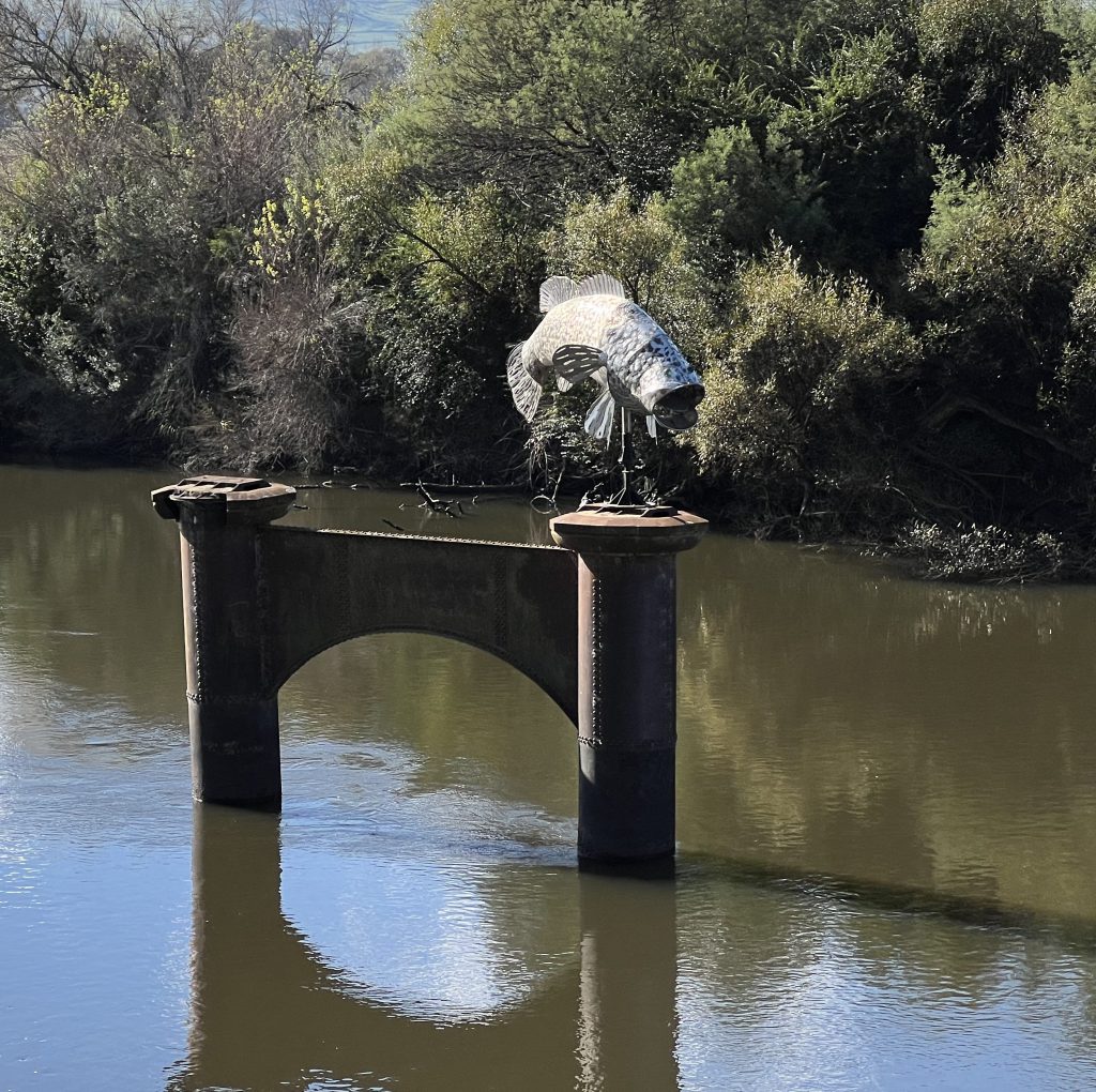 The drive is just that, not a lot to talk about just great scenery and a bit of history. There is a sculpture trail at the small towns along the way showcasing aspects of the natural river environment. We are fortunate in that the weather is basically clear, clouds and sunshine. Not too cold!