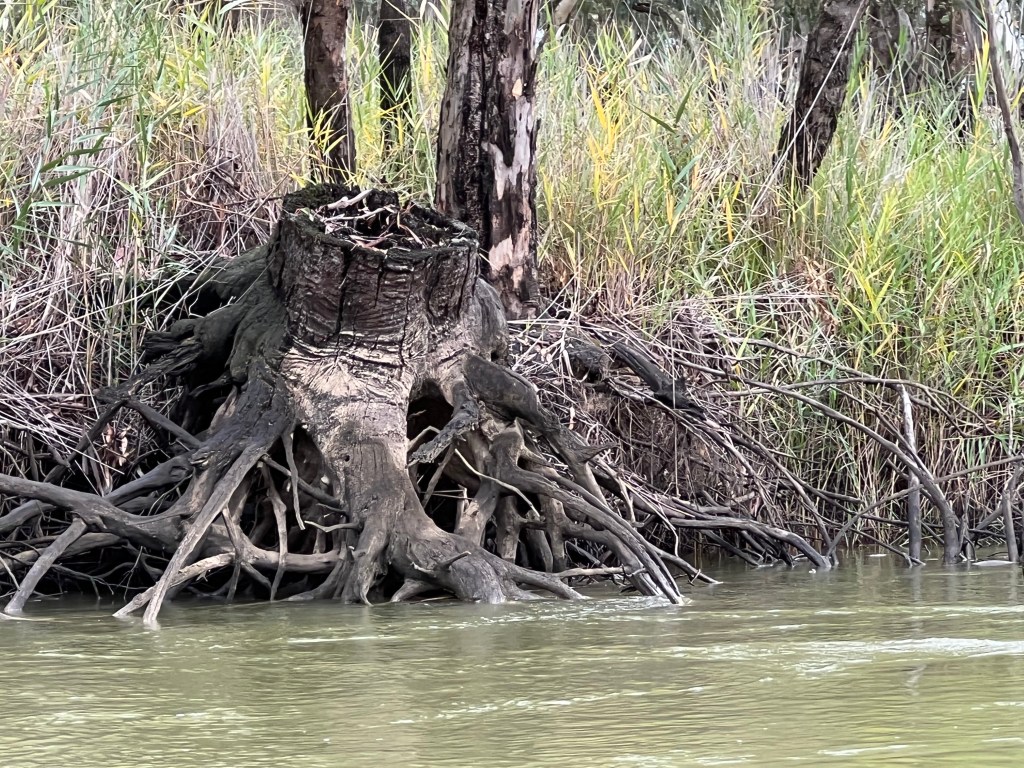 We had stumbled over the Cadell fault line! So what you might say! This fault is particularly important in the geological history of the Murray River. Now, if I am losing any of my dear readers here then I am sorry. Allthego likes a bit of geology and geography! I have had a brief look at Wikipedia to check up on this stuff. After all we are following the river and a little bit of geology want hurt, I hope. The Murray is about 130 million years old, having formed when the great inland seas receded from the interior. Some 25 million years ago there was a great continental uplift that gave rise to the fault and ridge line. The fault line runs from Deniliquin in NSW down to Echuca in Victoria. It cut right through the Murray and the river’s course was diverted into a number of channels and lake systems, creating the flood plain. Almost like an inland delta. The perfect habitat for the red gums!