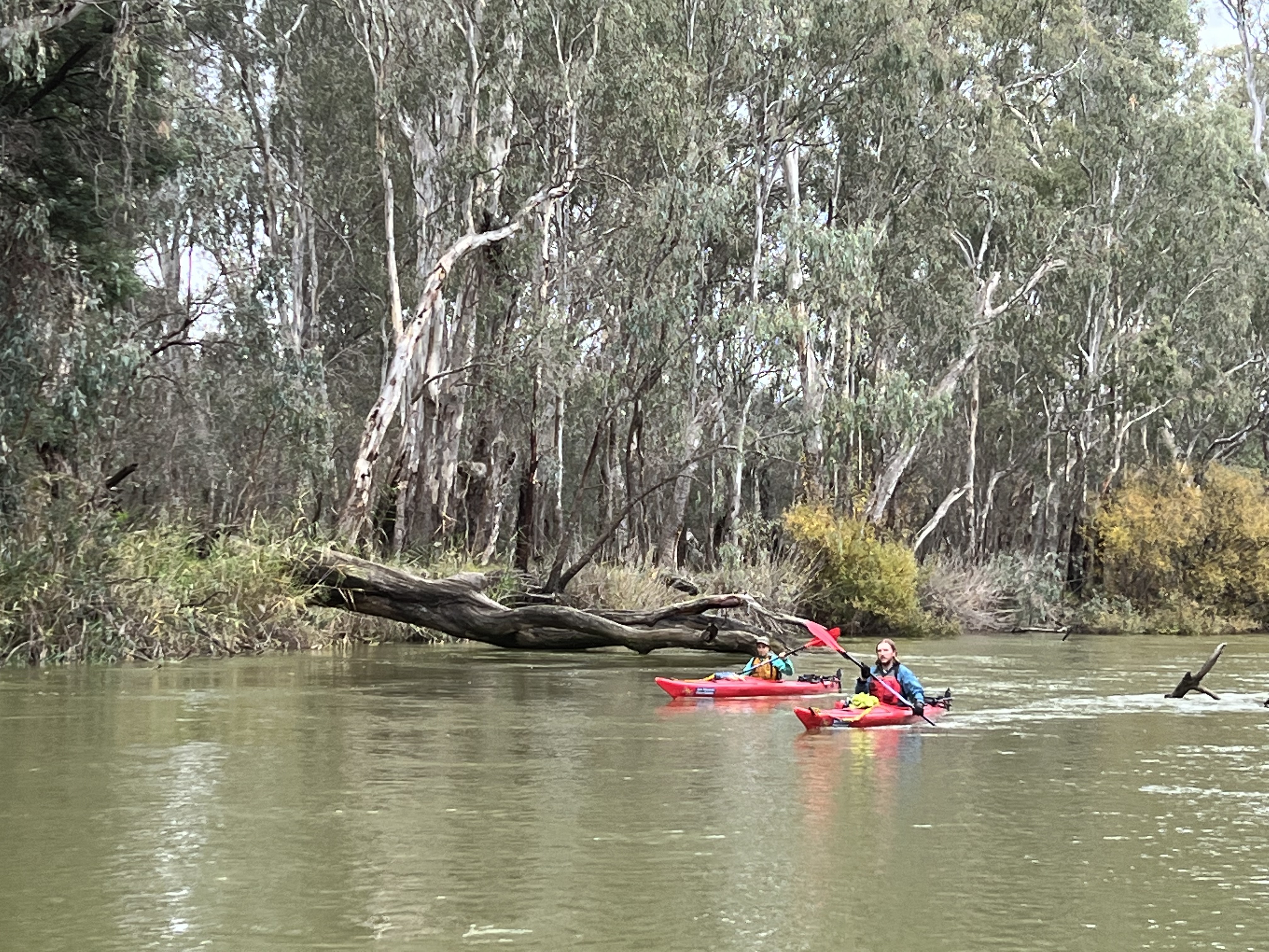 It was a great journey on the river, bird life abundant. We saw many azure kingfishers in the reeds and branches dangling riverside. A few people fishing and canoing along as well. The overcast weather an actual advantage as glare and shadows did not hinder the experience. The big red river gums were quite special. Some grotesque shapes. Also, stumps left behind from the logging days were dangling in the river and in other cases had sprouted again sending new growth out. An interesting place to camp and experience the river environment.