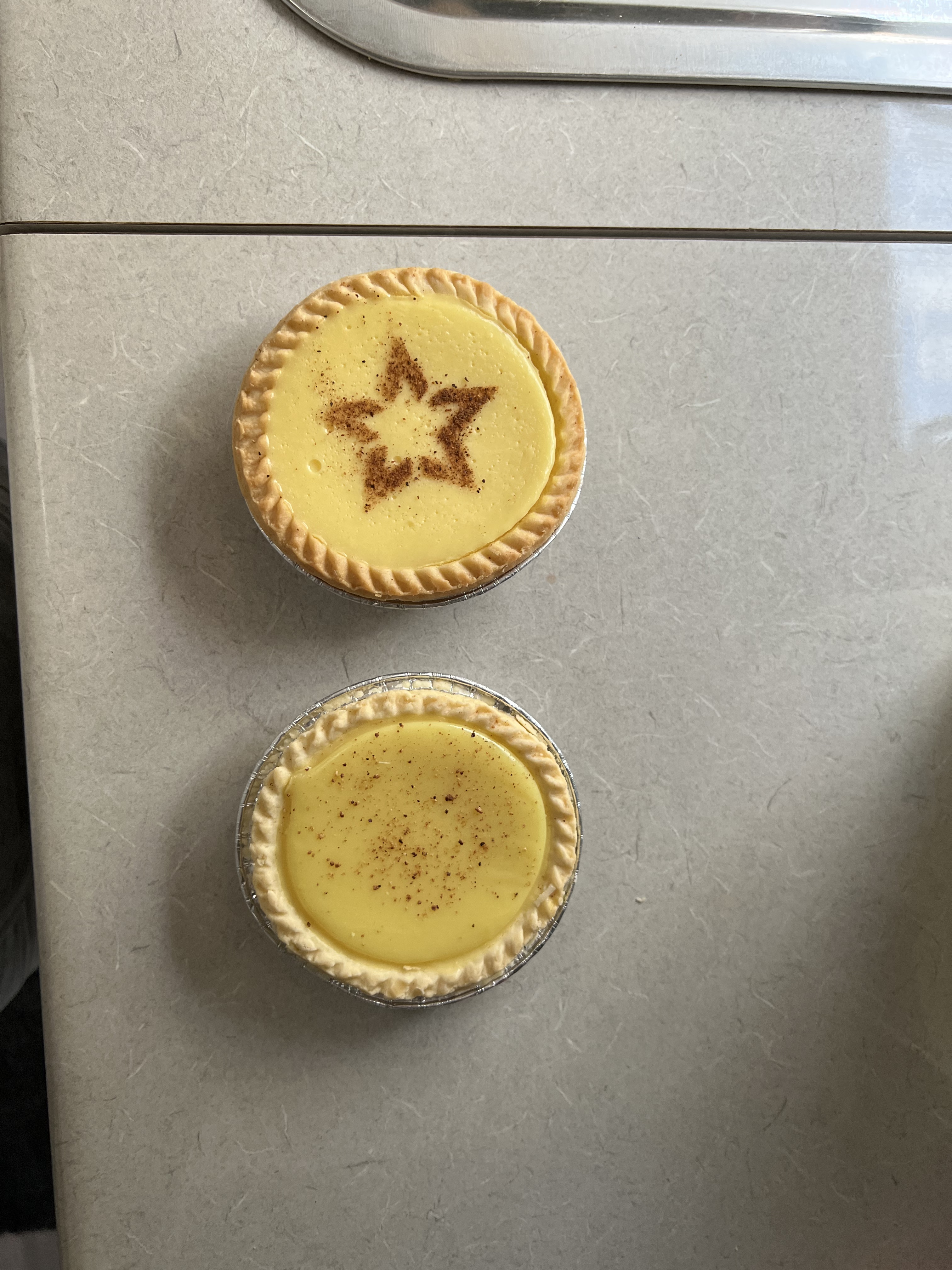 They were not overly inspiring. However, the Beechworth one had an innovative design by using a stencil to create a nutmeg star rather than just a pile of dust. They also did a spirally stencil swirl. Looked a bit like a flat white coffee topping. Our vote went to the Beechworth tart because of the initiative of the stencil pattern. Look forward to more tarts at our next stop!