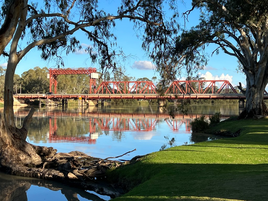 Murray Bridge draws its name from being the location of the first the bridge across the Murray River. Completed in 1879 the Bridge crosses the River and flood plain in a broad arc and is a great sight. The bridge originally carried a rail line but this was relocated to the dedicated rail bridge alongside. Today there is some extensive work being done on the Bridge to keep it in action into the future. There is a great view of the bridges from the Roundhouse, perched on a hill overlooking them. The engineer who built the first road/rail bridge lived in the Roundhouse while it was being constructed, keeping an eye on progress no doubt from the verandah.
