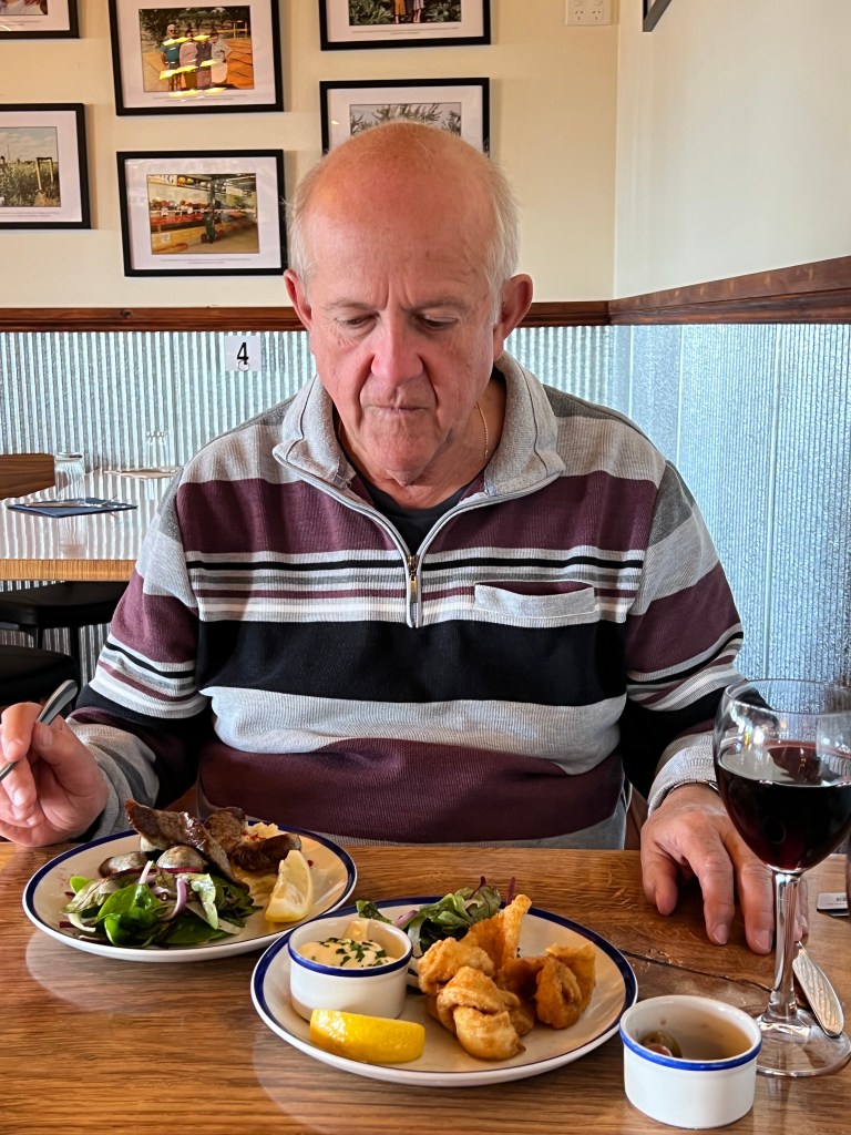 Renmark is also a ‘Greek’ town, Mildura was the ‘Italian town’. Or so it seems, there are some Greek places here and not as many pizza joints. We had lunch out at Mallee Estates Vineyard, where Eleni’s cafe provides some Greek fare to tempt the tastebuds. Elini is the matriach of this Greek family that has been here since the end of WW11, she came to Australia as a young teenager. Brought the family recipes with her. It is a tasty lunch washed down with some Mallee Estates Tempranillo. Goes with the food. We take some back for the van’s cellar.