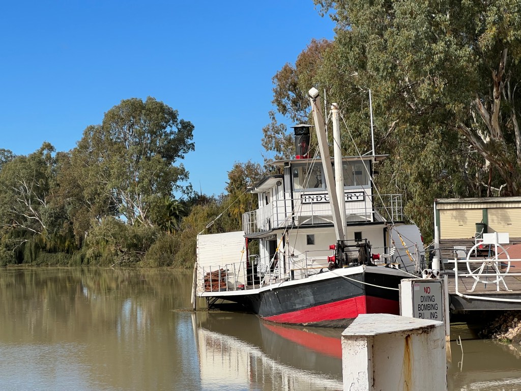 All the river towns have had their restored paddle steamers, albeit paddle vessels. Renmark is no different, it actually has a restored working paddle steamer, a PS! The PS Industry commissioned in 1911. It goes out for a run every couple of weeks or or so and we have missed it on this trip. Maybe next time on our way back east!