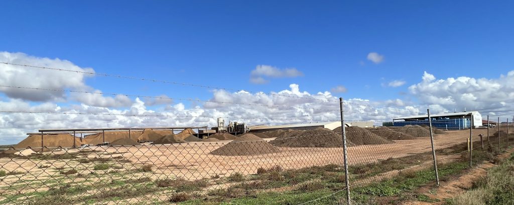 We are now at Waikerie, citrus trees in particular dominate the agricultural landscape. They look in good shape too. The trip up from Renmark has also taken us past almond plantings stretching as far as the eye can see. It is a big industry. We briefly stopped at an Almond processing plant and found large mounds of what must be millions of empty almond shells waiting to have something done with them in the surrounding yards of the plant.