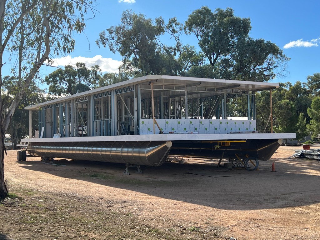 A number of historical buildings remain in the town, including two hotels and the long closed Bank of Adelaide branch and manager’s house. A Museum is housed in the 1878 Landseer building, a local shipping agency back then. The town is now a service centre for the orchards and other agricultural pursuits of the region as well as a tourist mecca. Along the river bank numerous houseboats are tethered, we went off on a short drive and found a hire business where a monster houseboat was under construction. MV Allthegobro would be a good name for it, we think these cater for up to eight people in four ensuited bedrooms and all the other deck space, eating areas etc. Many have hot tubs to sit back in and take in the views along the River.