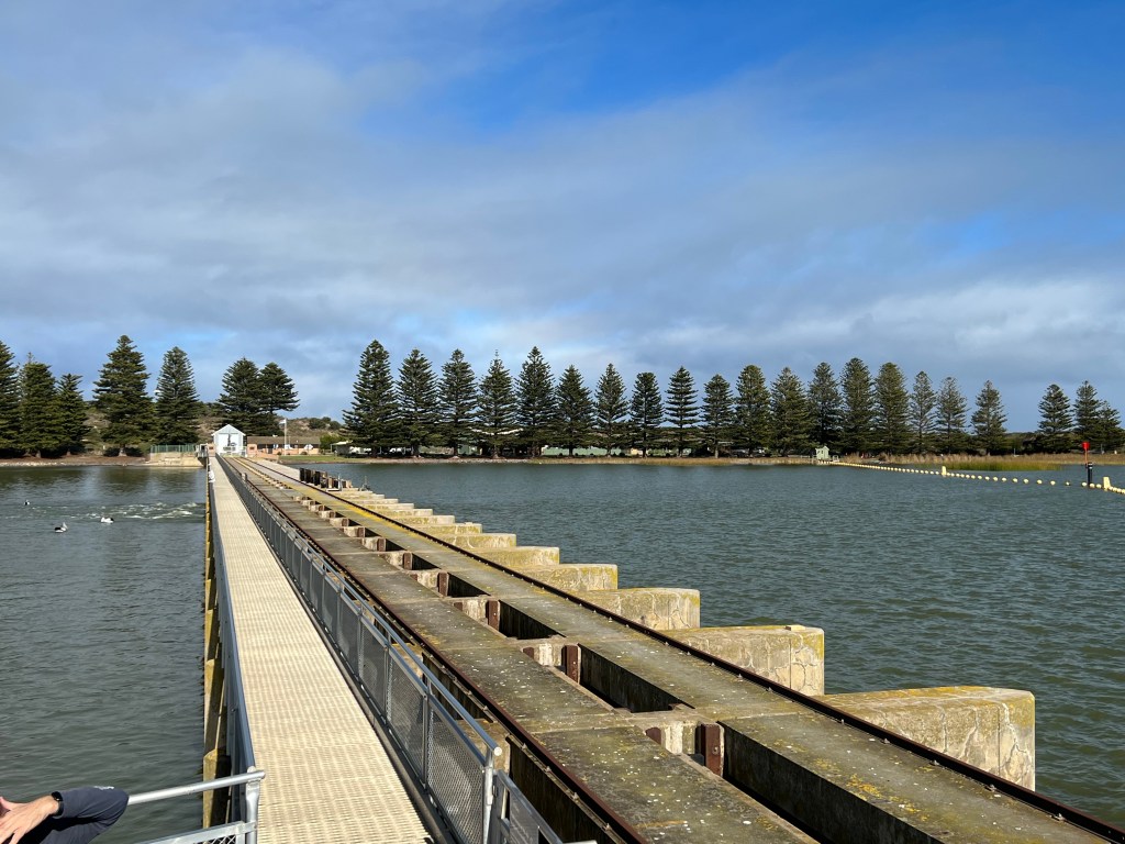 Goolwa is a very pleasant lakeside town, some nice old buildings and view points of the Lake. The bridge to Hindmarsh Island a prominent landmark. The bridge was once a major point of confrontation with our indigenous peoples, its construction, replacing a ferry, was a major impositionon on an area of the island that was reserved for ‘secret women’s business’. One has to cross over onto Hindmarsh Island to get to the river mouth. Things seem to have calmed down now and Hindmarsh Island is having a building boom with a big canal estate and numerous other developments taking place. Prior to the Bridge Allthego suspects it was a sleepy old place, protected by the inefficiencies and transport delays of the ferry operation.