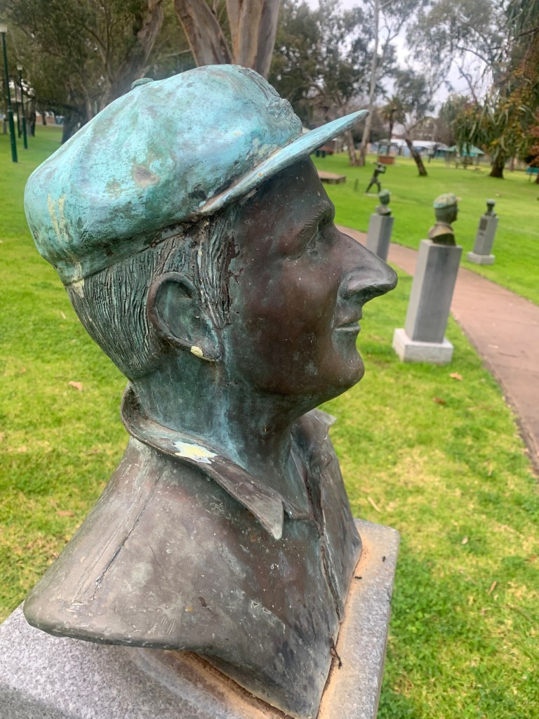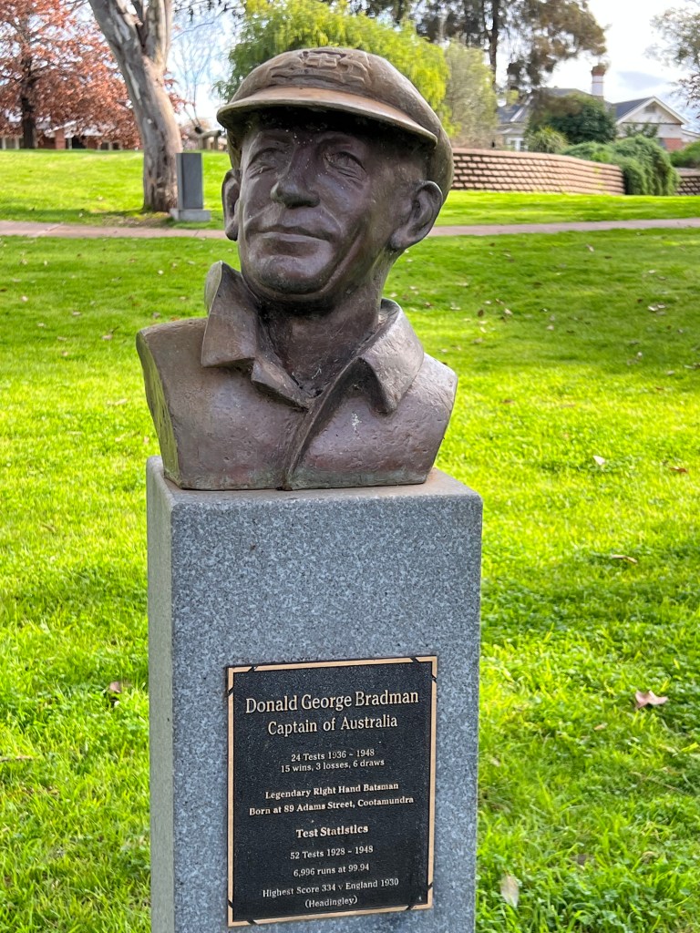 Cootamundra has another cricket must see, the ‘Captains Walk’. Bronze busts of each of the men who were captains of the Australian cricket team, referred to sometimes as Australia’s second most important job after that of the Prime Minister. It starts with the Captain of the Indigenous team that went to England in 1868 and everyone of them since. A great walk down memory lane, Allthego remembers most of them from the early 1920s on (not that he saw them all play of course!), names and records from history.