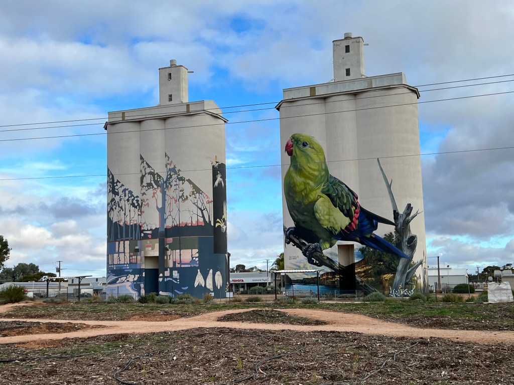 Waikerie is very much focussed on citrus, silo art works and the Murray Cod, as well as the Murray Crayfish. Some very good silo and street art are the town’s main attractions. The Murray also winds its way through the town with cliffs on one side and flood plain on the other, littered with billabongs and creeks.
