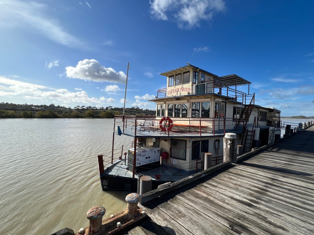 An entertaining option in Murray Bridge is to take a lunch cruise on the Captain Proud, a restored paddlewheeler no longer under steam. We went upstream and then downstream for three hours and enjoyed lunch on board and views from the upper deck. A young Belgian couple were our table companions during lunch. They were in Australia for three weeks, visiting a friend in Adelaide who was then taking them up to Darwin and Kakadu, via Uluru before flying home from Darwin. They were not aware of the Bunyip in the nearby cave and Allthego suggested it was a must see for them. Not being familar with Bunyips they were a little sceptical, but ultimately said they would go and have a look. Allthego is astounded that we do not promote these icons of the billabong more strongly as tourist must sees. A bit like the Murray Cod, Allthego thinks we should have more replicas of Bunyips on the banks of our big River.