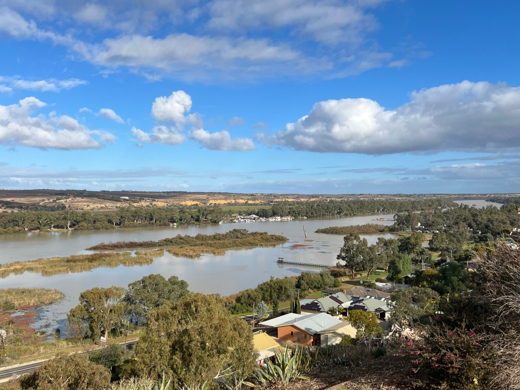 Later in the morning we head back across the River on the Boobook and up the quite steep road to the top of the cliffs and set off on the short 32 km drive down to Mannum for our next stopover, passing by another great view down the cliff line and across the River to expansive billabongs and farmlands.