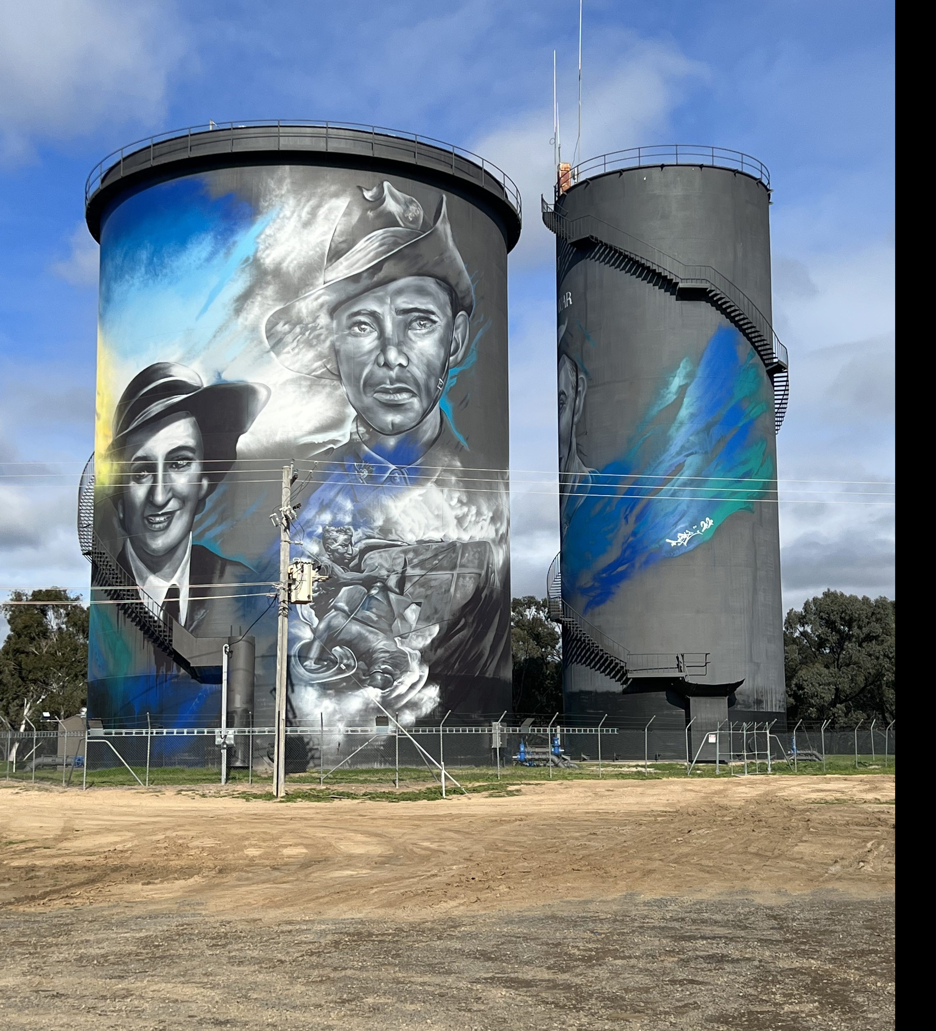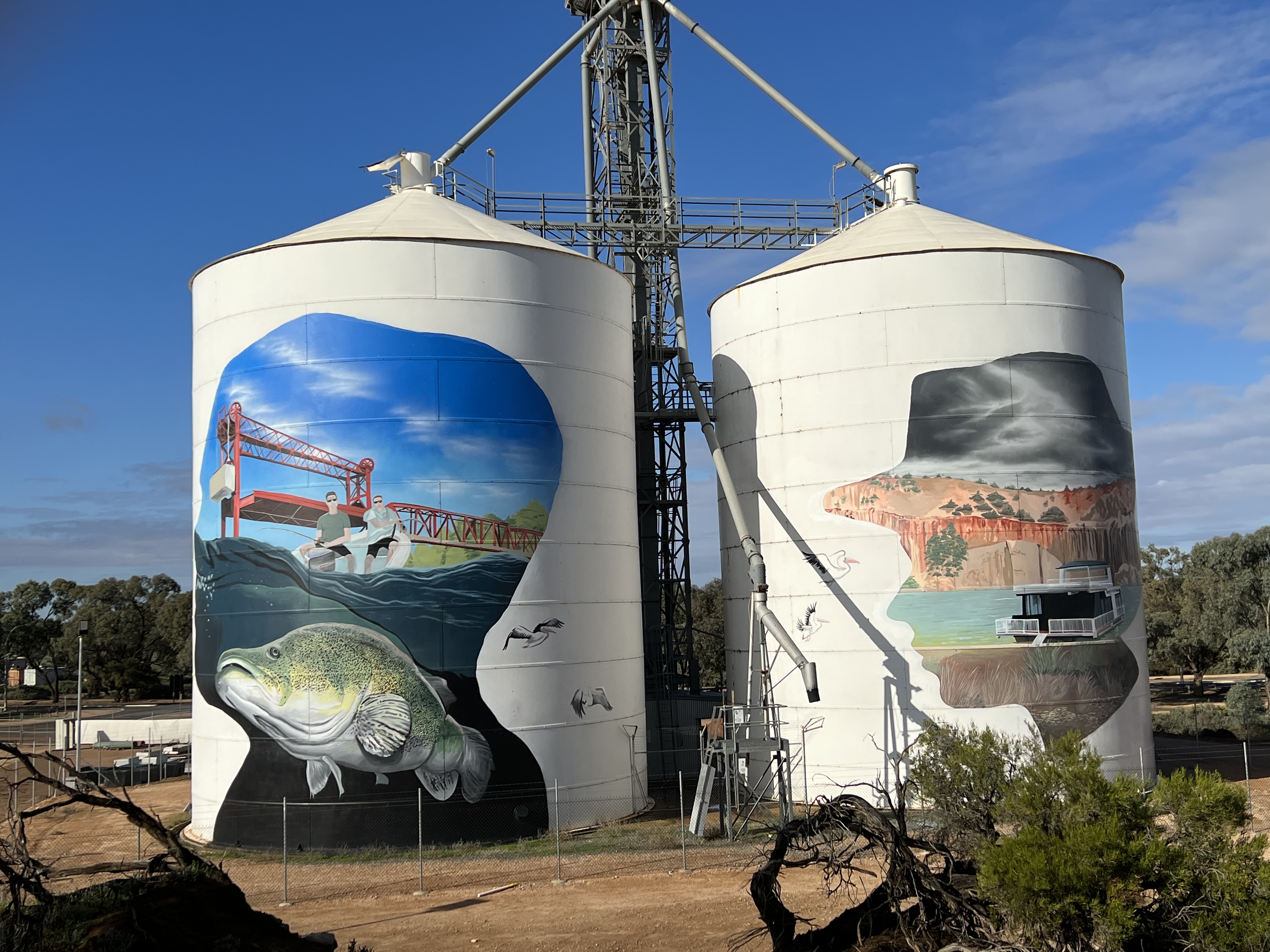 Waikerie is very much focussed on citrus, silo art works and the Murray Cod, as well as the Murray Crayfish. Some very good silo and street art are the town’s main attractions. The Murray also winds its way through the town with cliffs on one side and flood plain on the other, littered with billabongs and creeks.