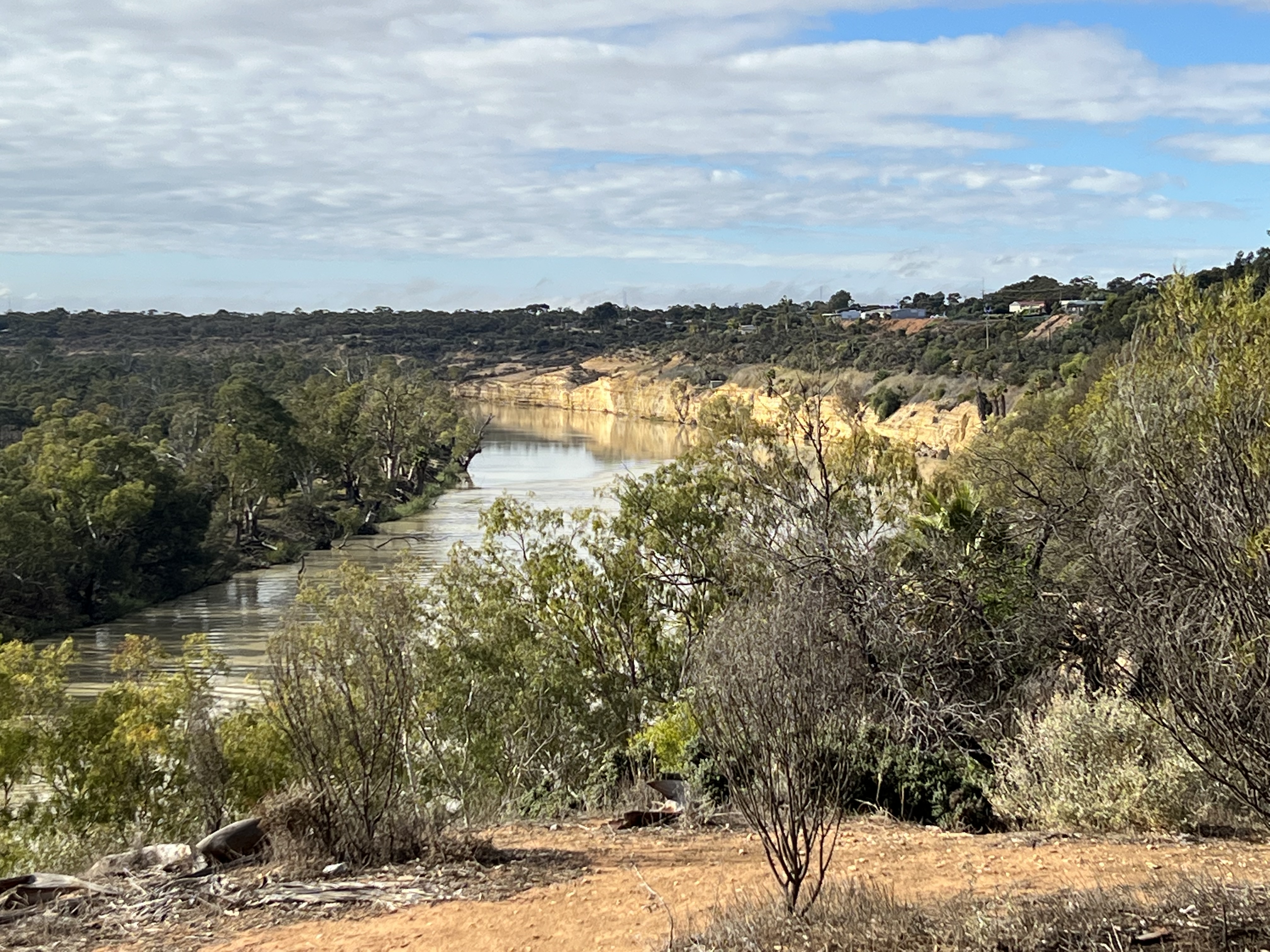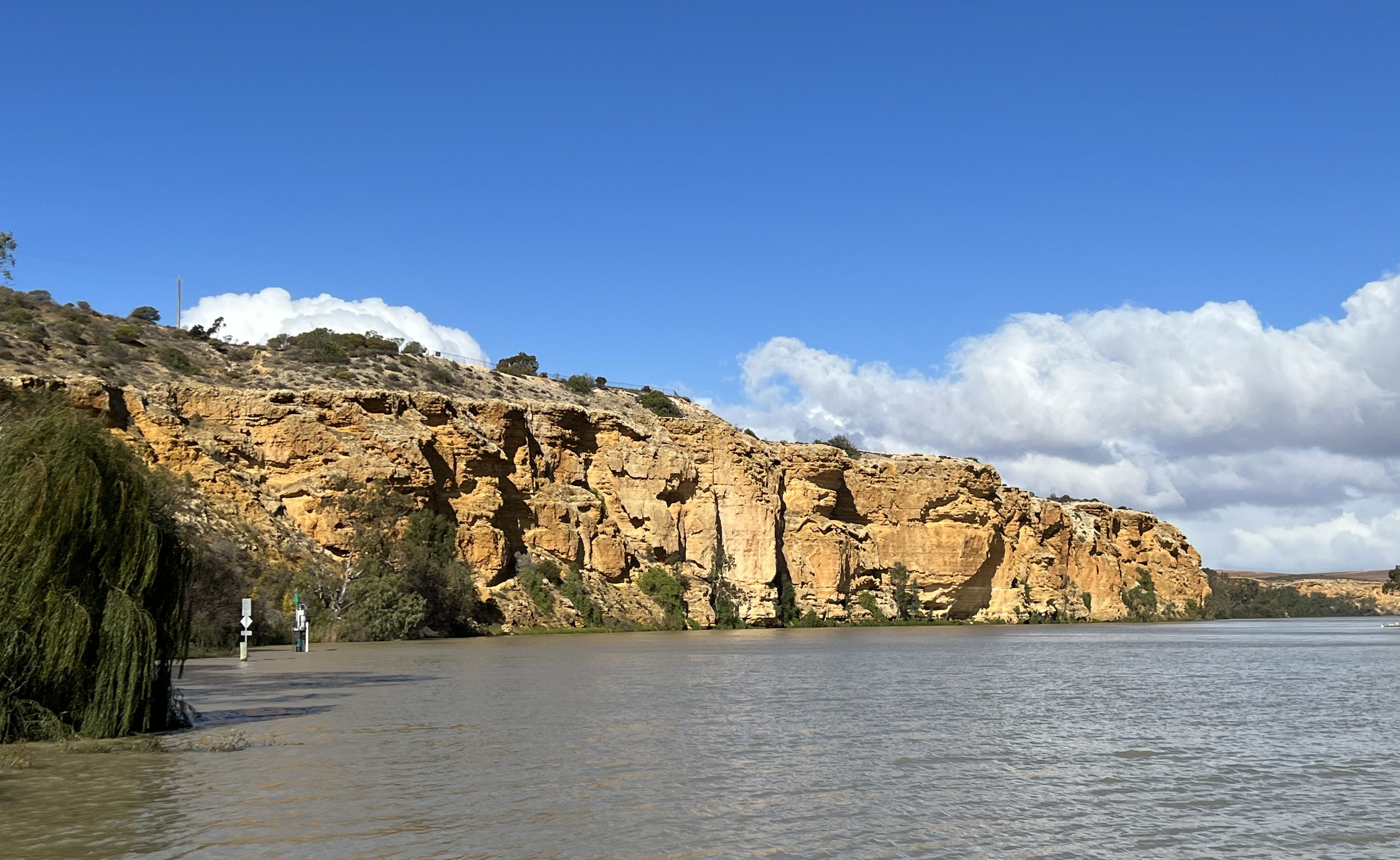 Later in the morning we head back across the River on the Boobook and up the quite steep road to the top of the cliffs and set off on the short 32 km drive down to Mannum for our next stopover, passing by another great view down the cliff line and across the River to expansive billabongs and farmlands.