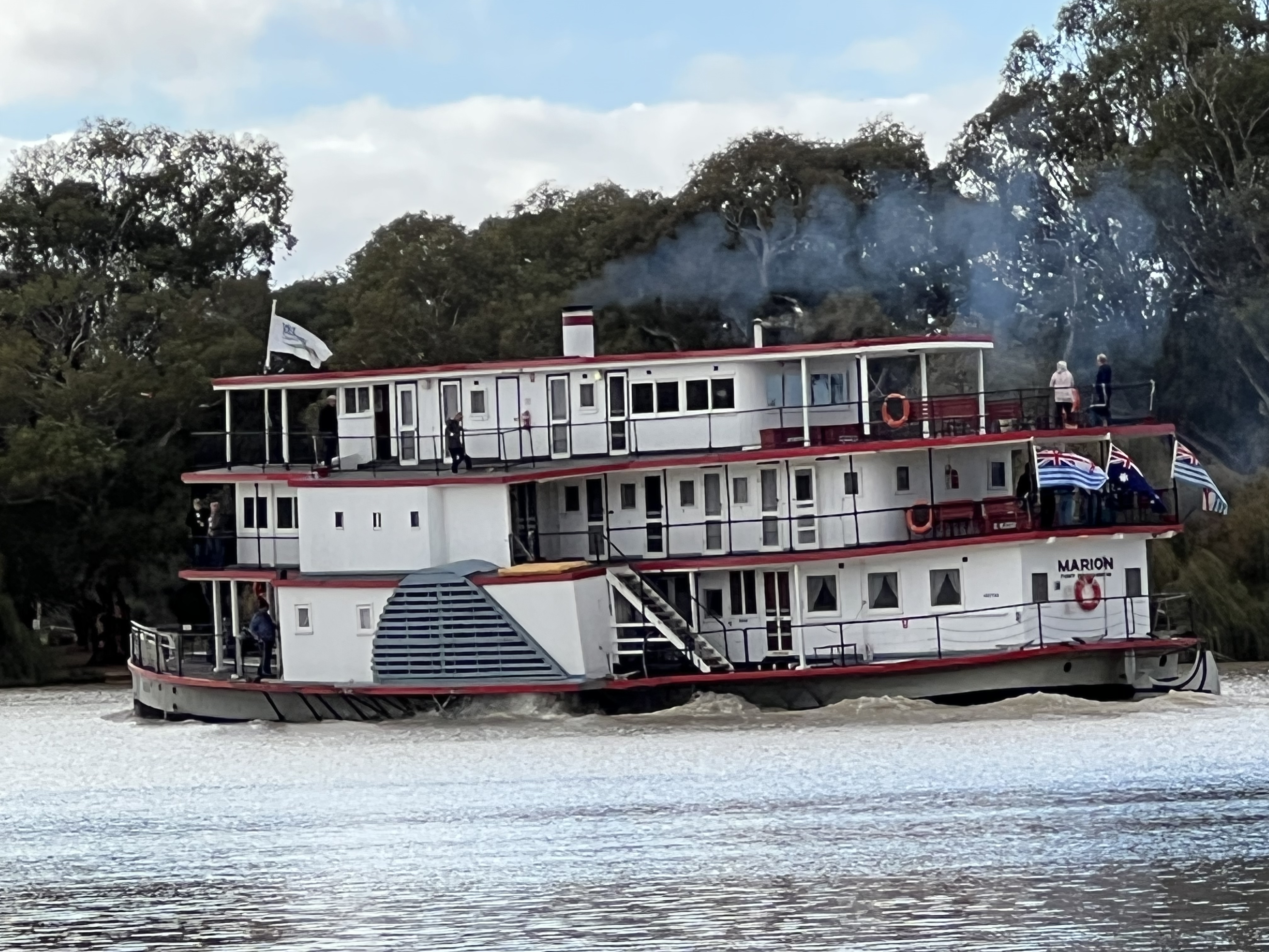 PS Marion was steaming off on it’s trip up the Murray, great sight with steam and smoke from the stack as it chugged along from the morring past our camp site.