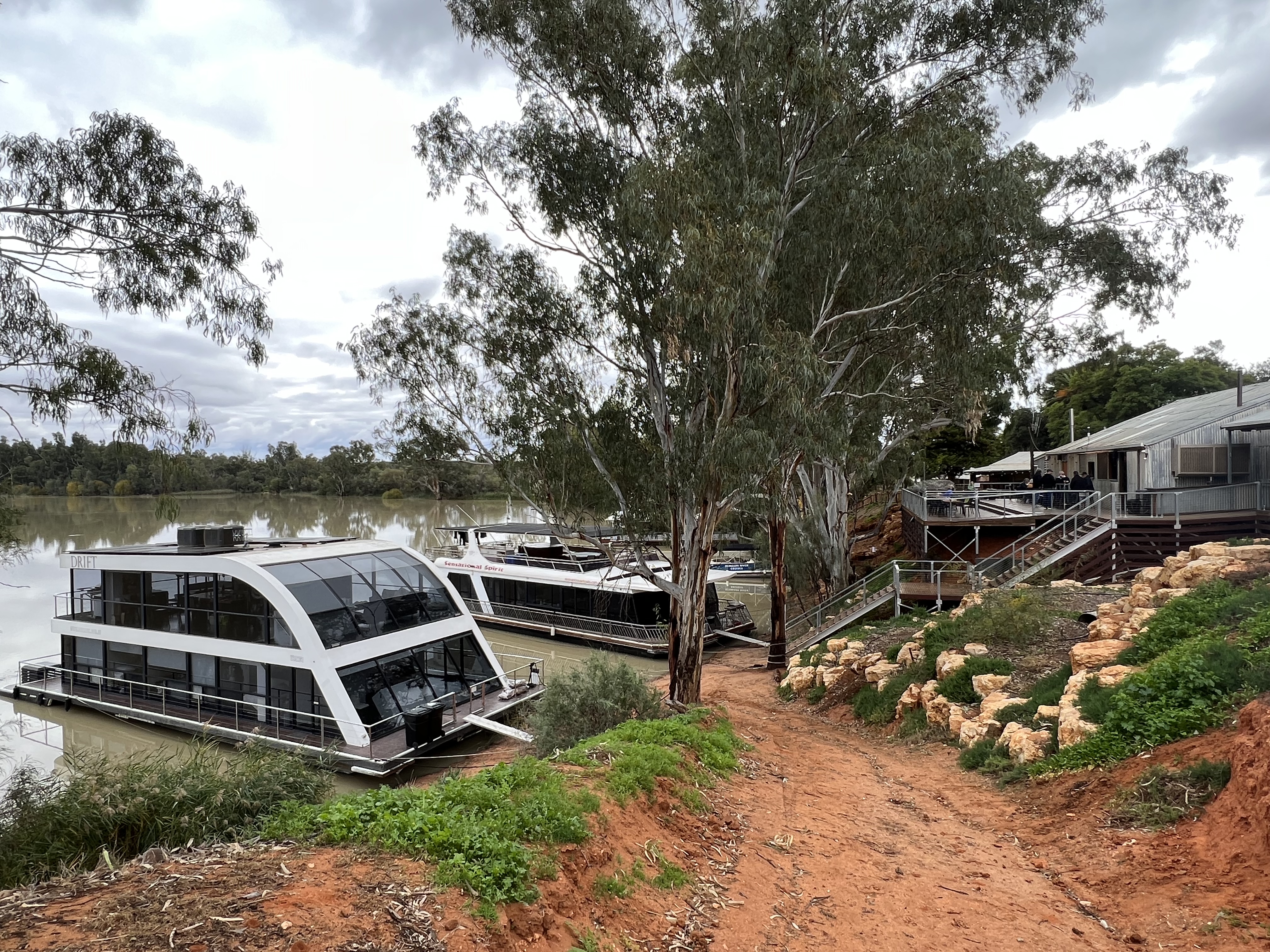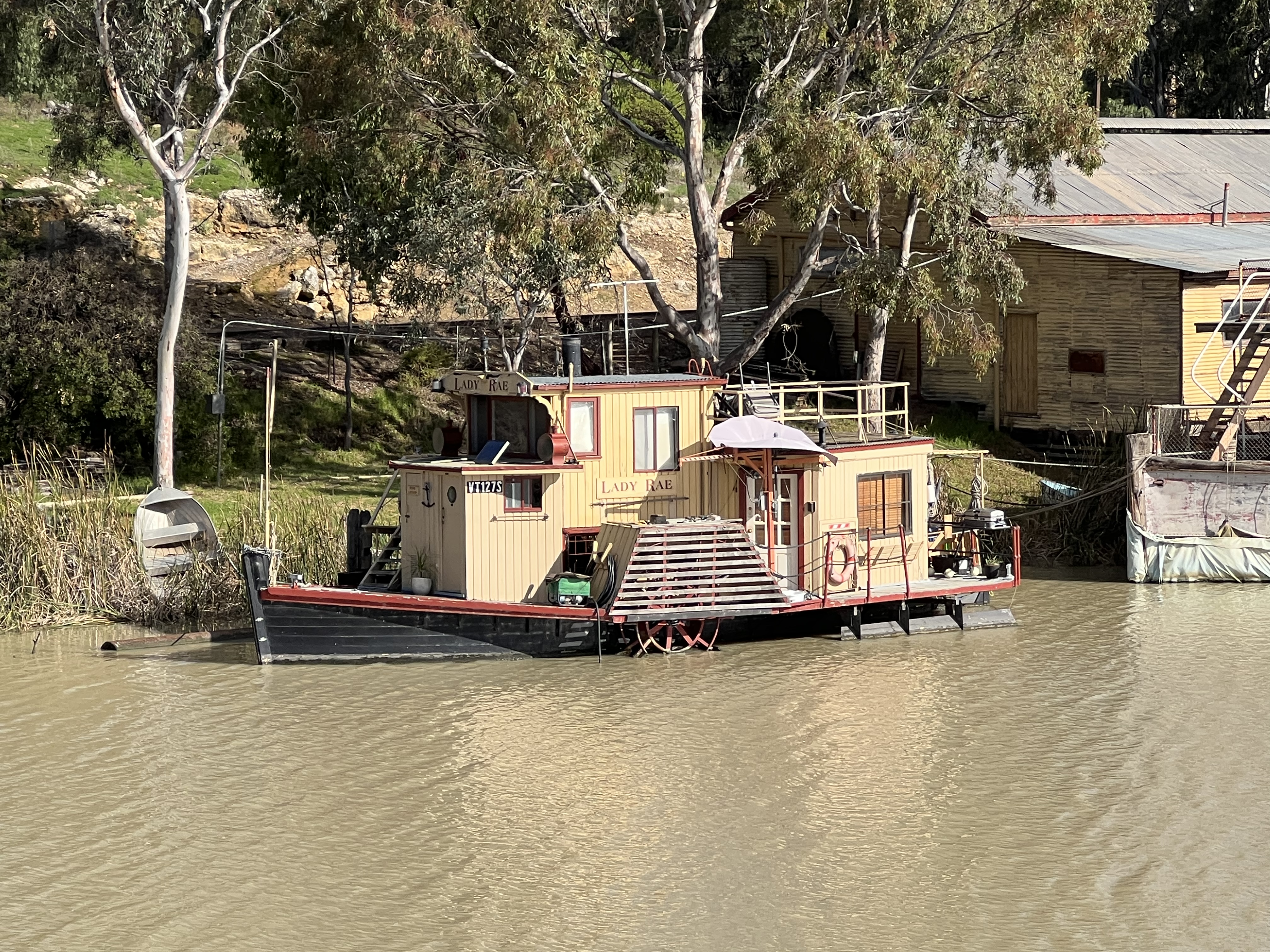 A number of historical buildings remain in the town, including two hotels and the long closed Bank of Adelaide branch and manager’s house. A Museum is housed in the 1878 Landseer building, a local shipping agency back then. The town is now a service centre for the orchards and other agricultural pursuits of the region as well as a tourist mecca. Along the river bank numerous houseboats are tethered, we went off on a short drive and found a hire business where a monster houseboat was under construction. MV Allthegobro would be a good name for it, we think these cater for up to eight people in four ensuited bedrooms and all the other deck space, eating areas etc. Many have hot tubs to sit back in and take in the views along the River.