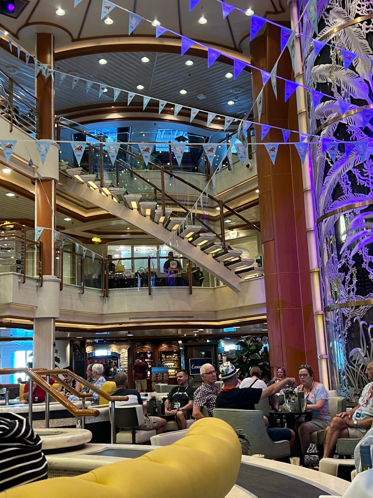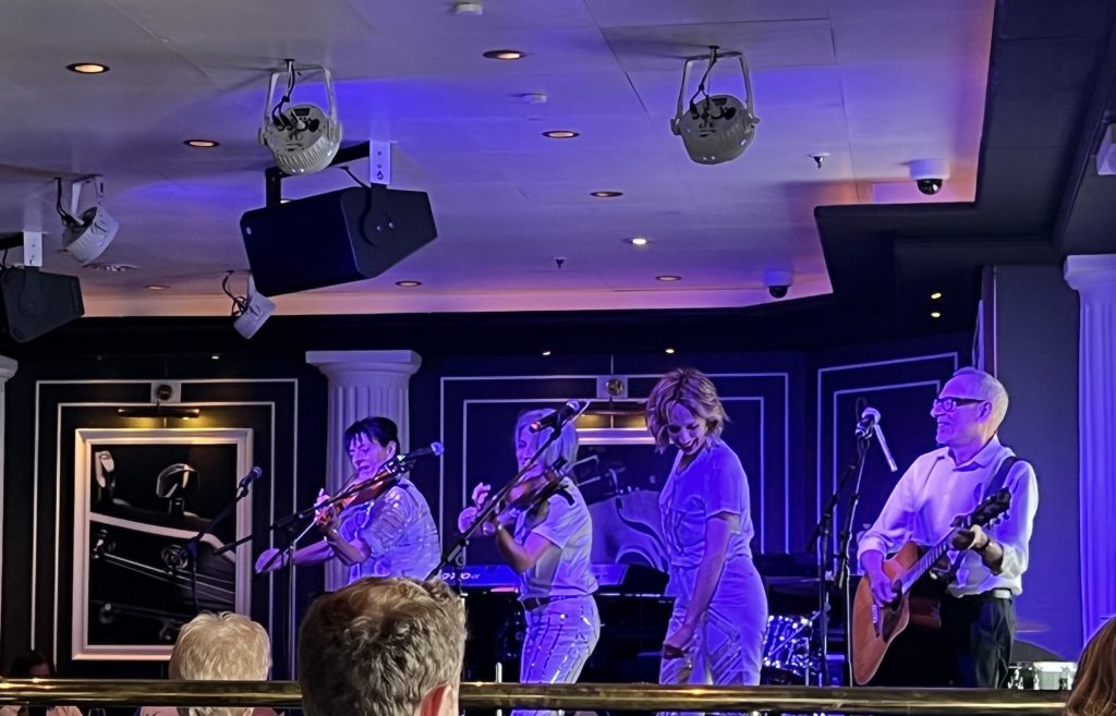 The Encounter is certainly a party boat. It is inhabited though by a large proportion of people who used to be party animals, trying their best to relive the old days! There has been a wide range of informative seminars to partake of. Among them,’Wrinkle remedies’, ‘Arthritis and back pains solutions’, ‘How to look 10 years younger’ and ‘Guided meditation’. We have not been able to get to any of these due to being trapped in the music lounges listening to hits of the 60s and 70s. The Cruise Director has certainly targeted the market well.