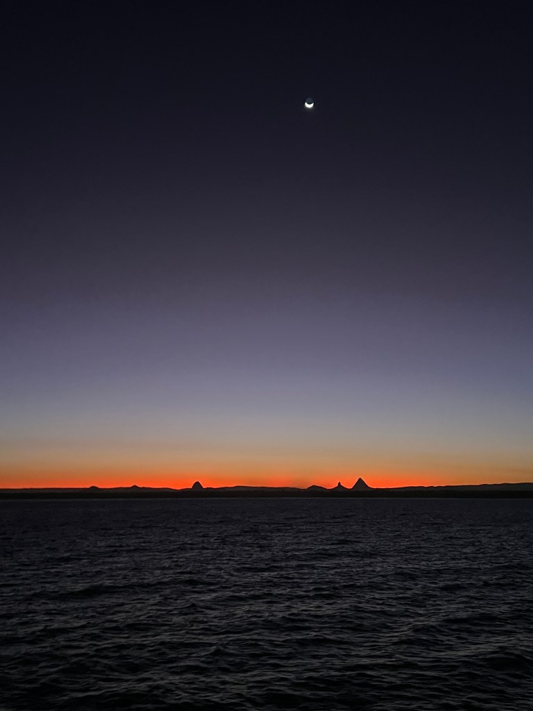 The ship leaves from the Brisbane International Cruise Terminal. This was opened just before Covid struck and has been in mothballs, only recently opening. It is further down the Brisbane River than the old terminal at Hamilton. We no longer sail under the Gateway Bridge, which was always a bit of a highlight leaving Brisbane on a cruise. It is a fine sunny day, a little hot and humid and it looks like fine sailing weather out into Moreton Bay and on the way down the coast to Melbourne.