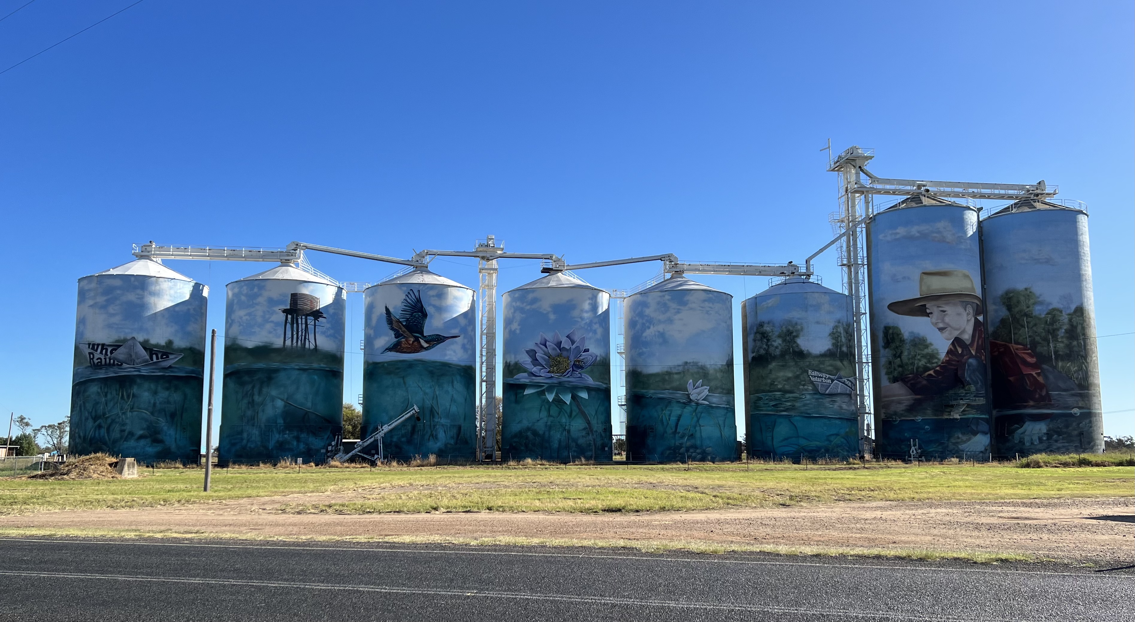 The town has a water tower and of course a mural has been painted on it, by the John Murray from Lightning Ridge. The base has an indigenous story line to add ‘country’ to the overall design. Quite impressive.