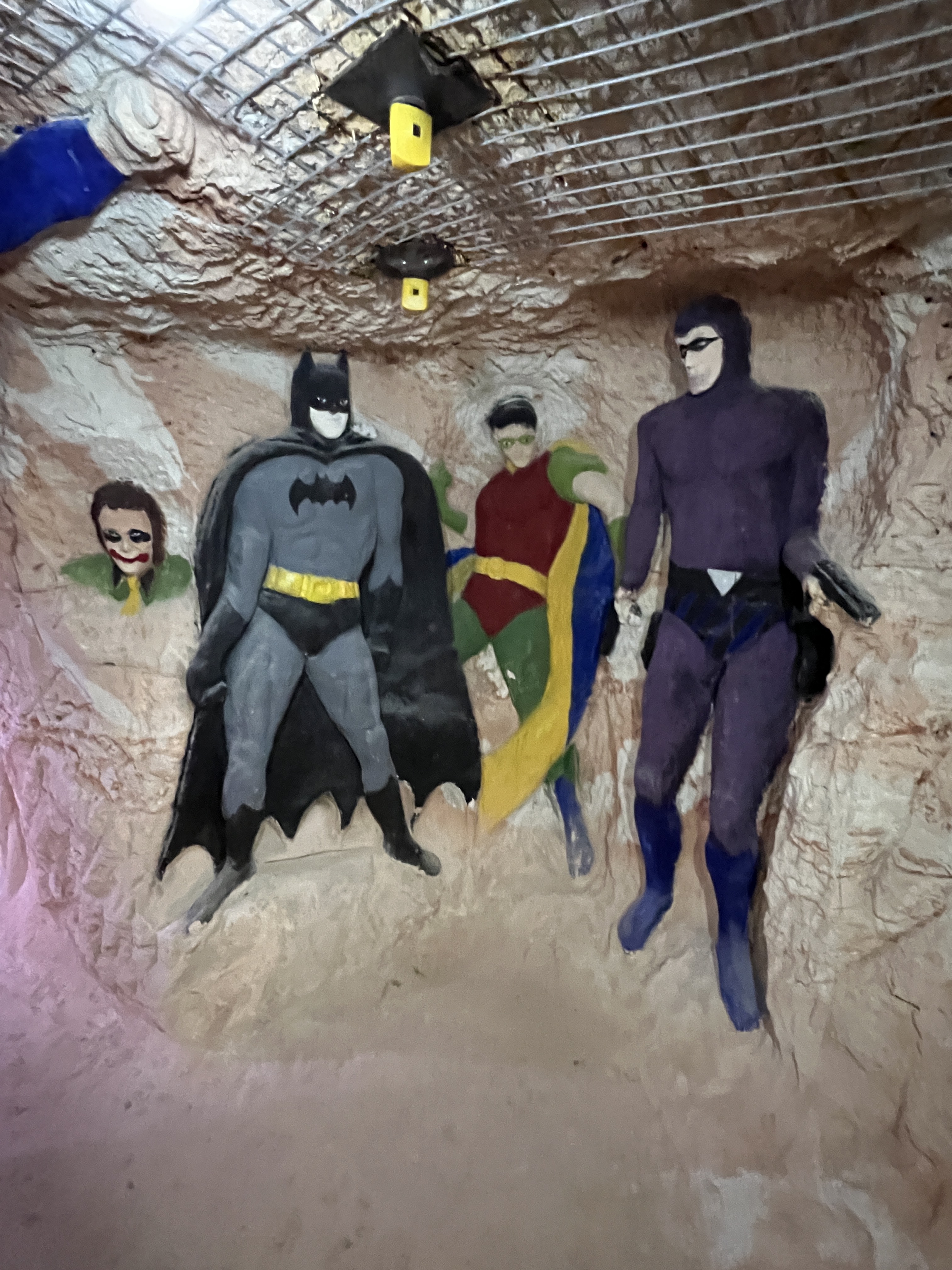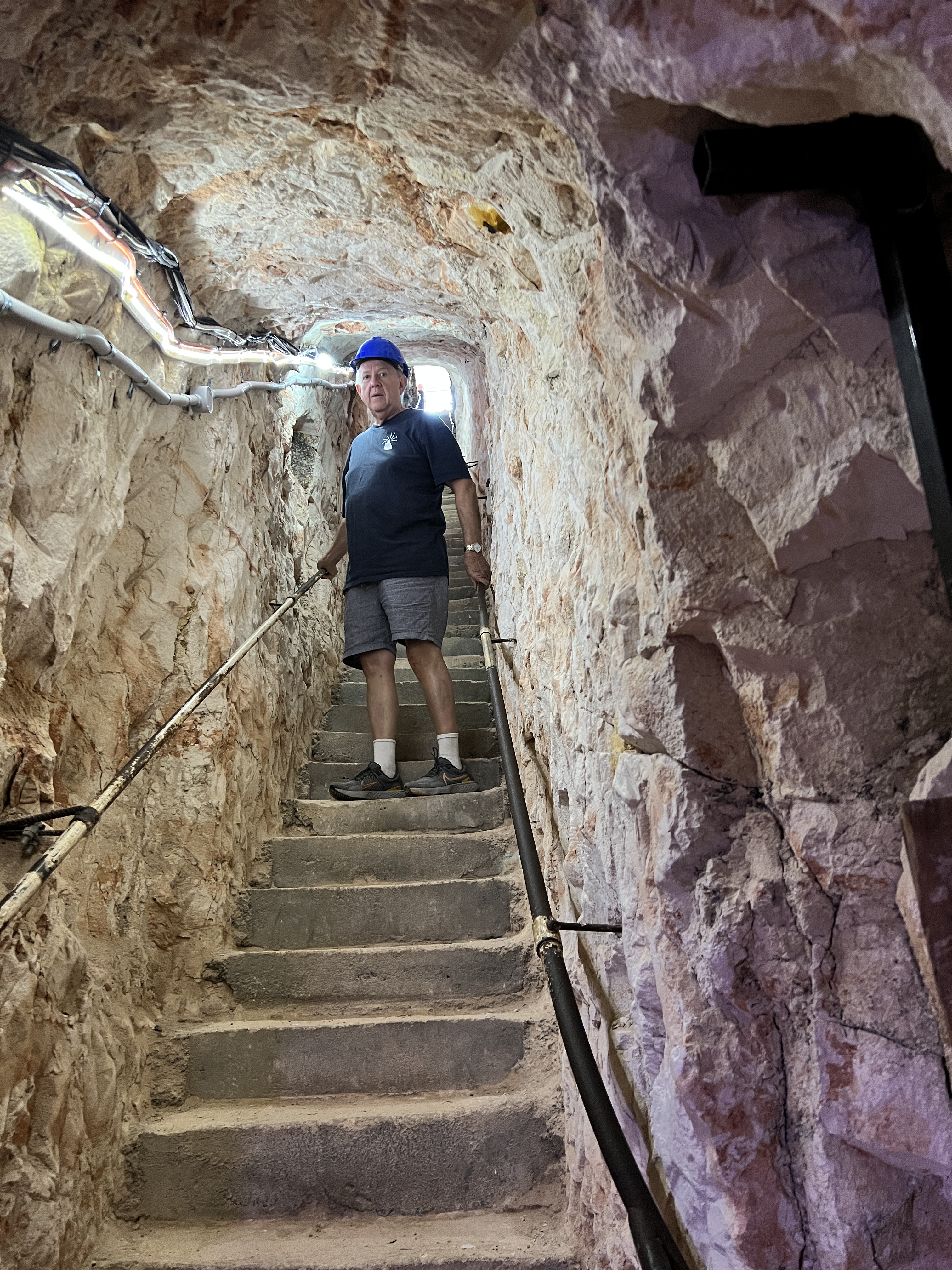 Not far from Lunatic Hill, there is a tour of an underground mine that we ventured on. It was not so much to see mining operations but rather hundreds of carvings down the mine by an old timer.