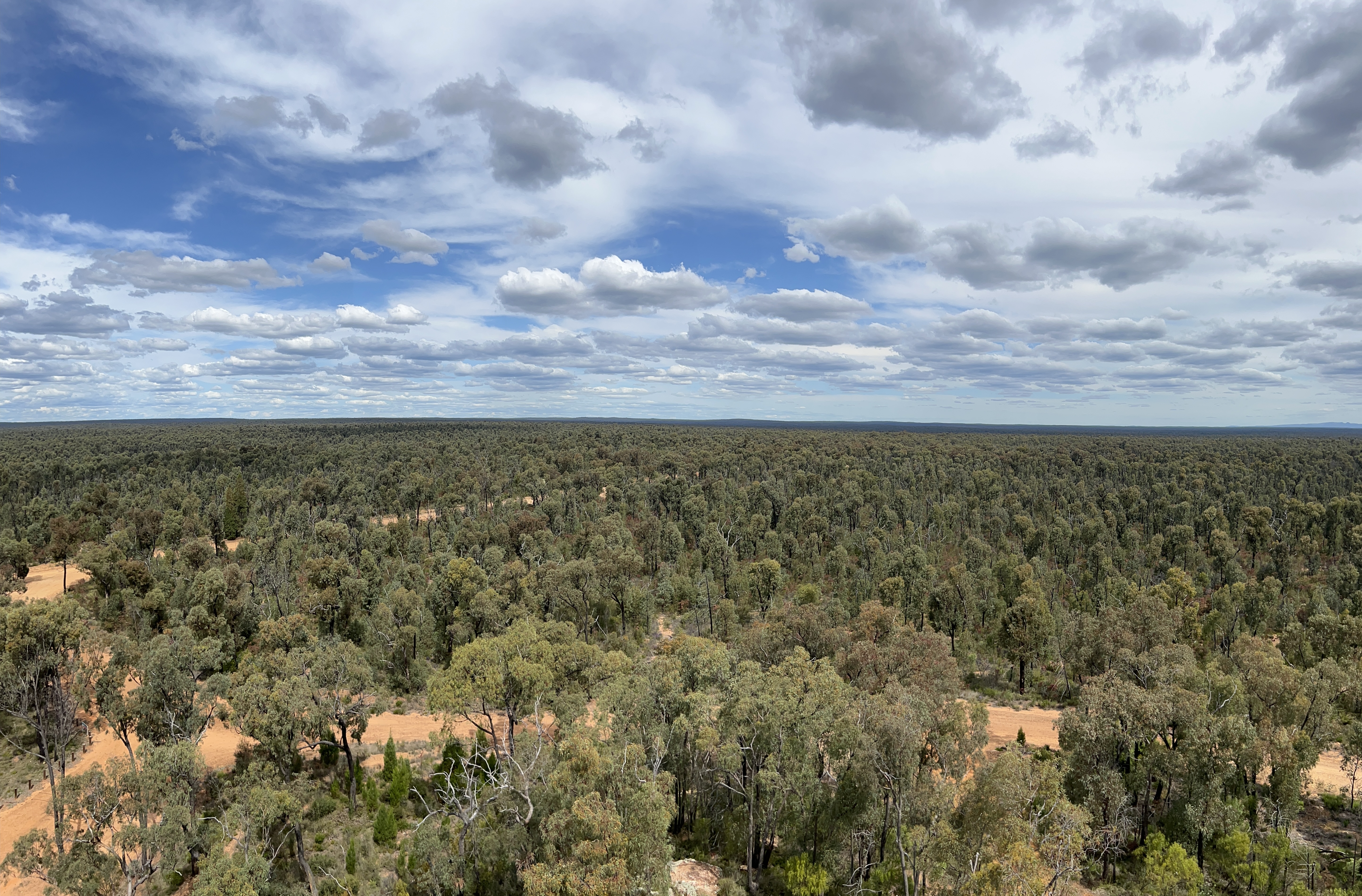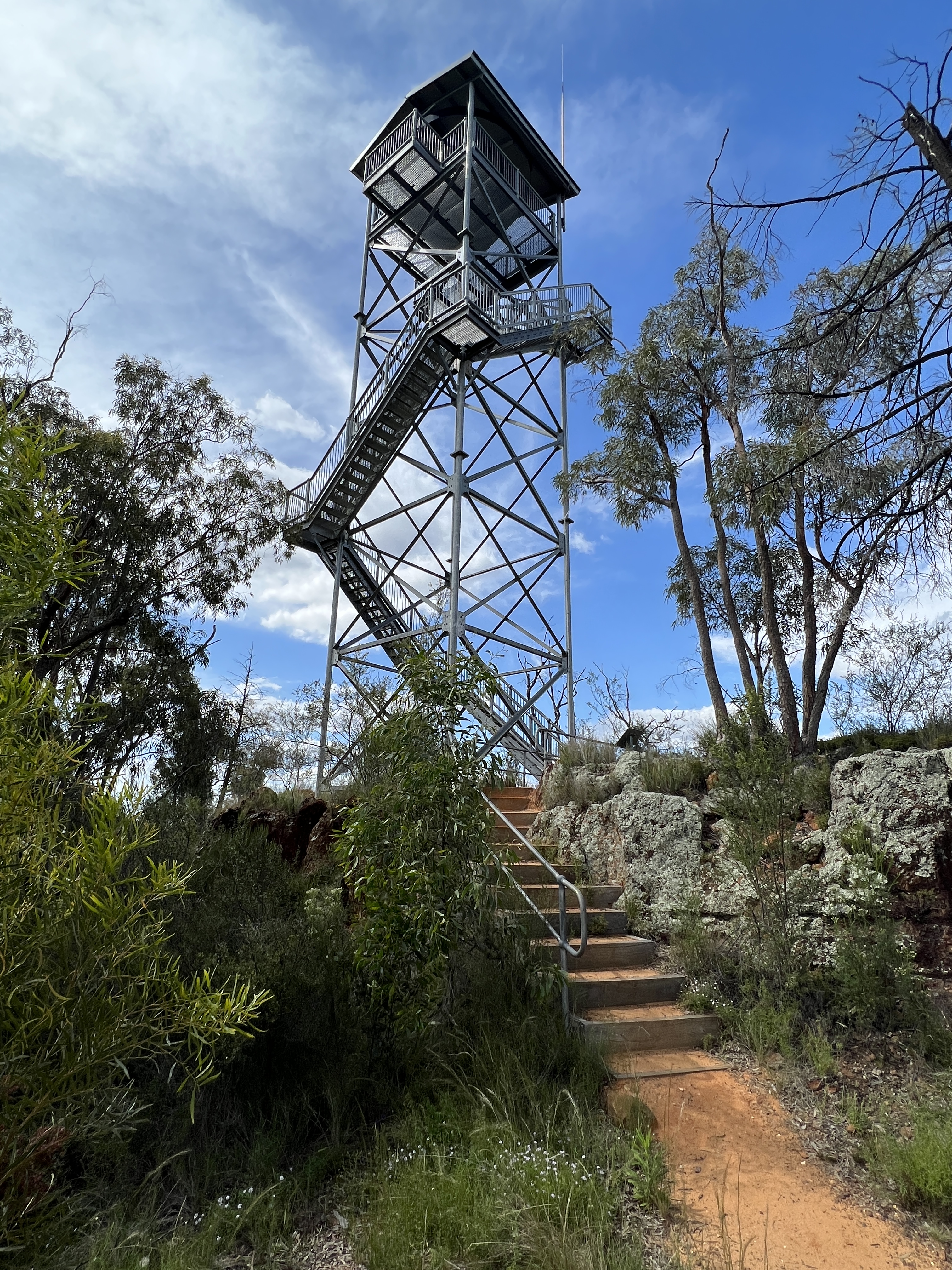 The view from the top of the tower is particularly spectacular, the Forest stretching away in all directions. The Warrumbungles could be seen on the horizon.