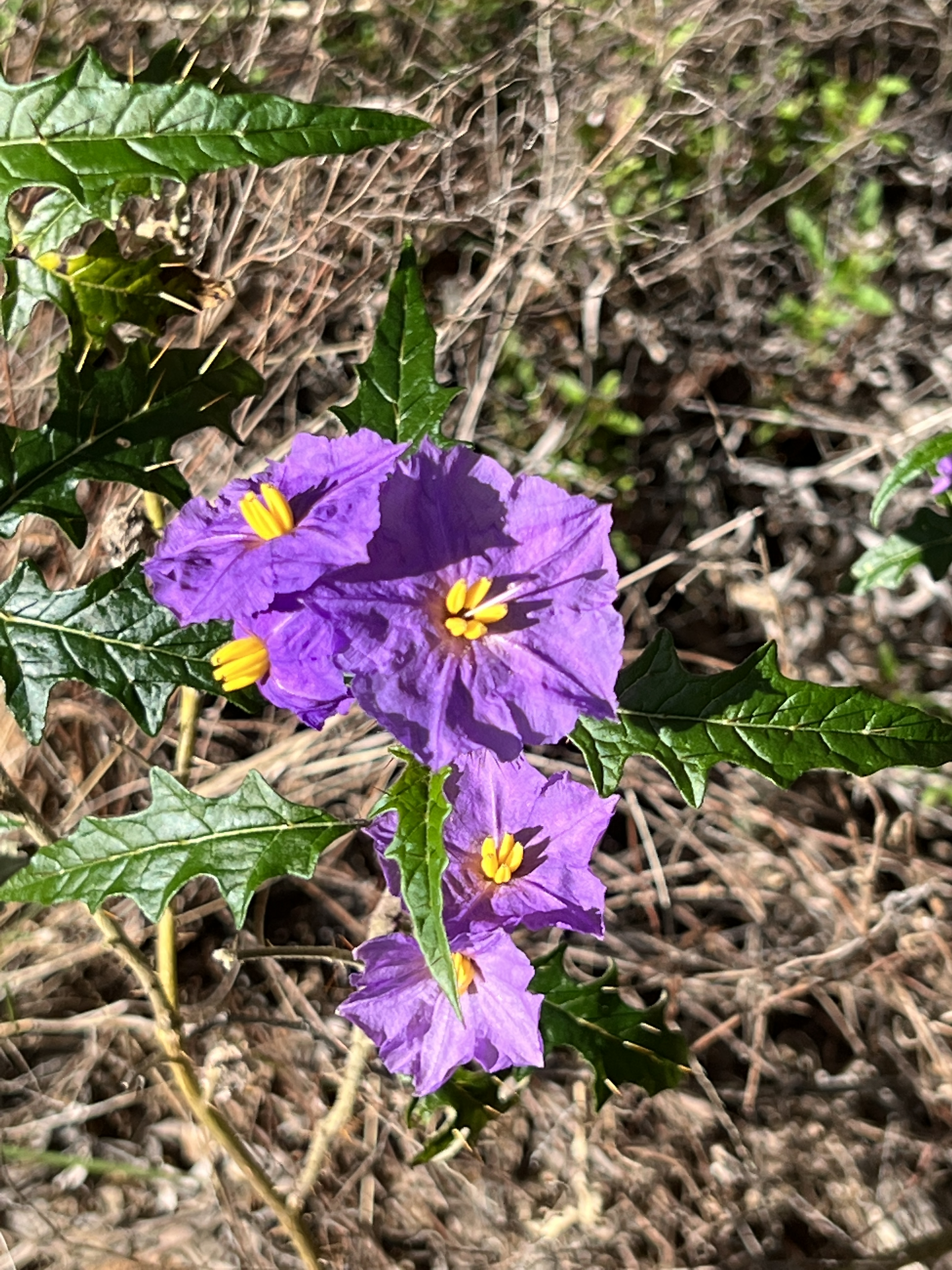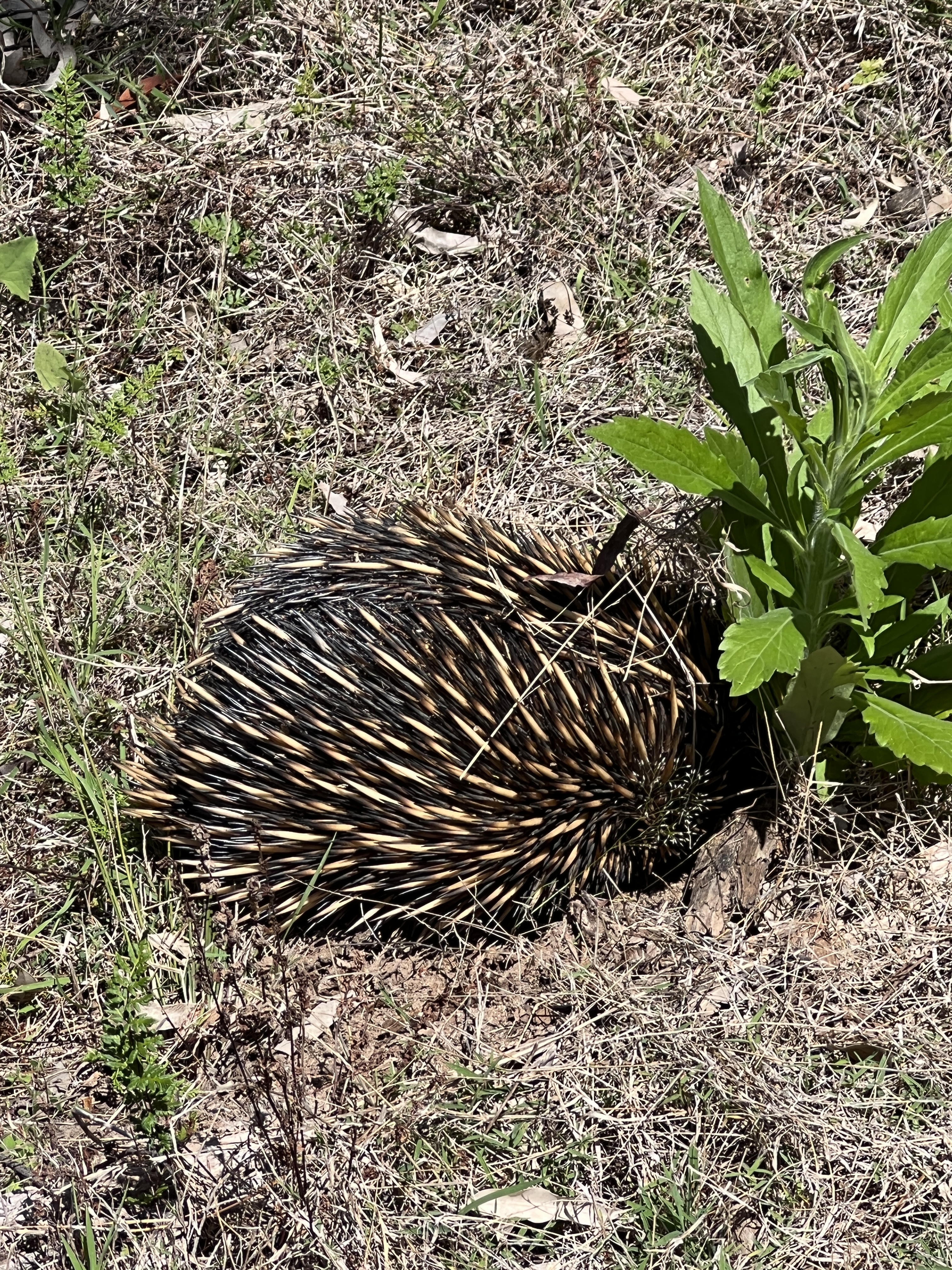 On the other side of the creek the track heads slowly up hill to the campground, more wildflowers and an echidna rooting around under a plant for something tasty.