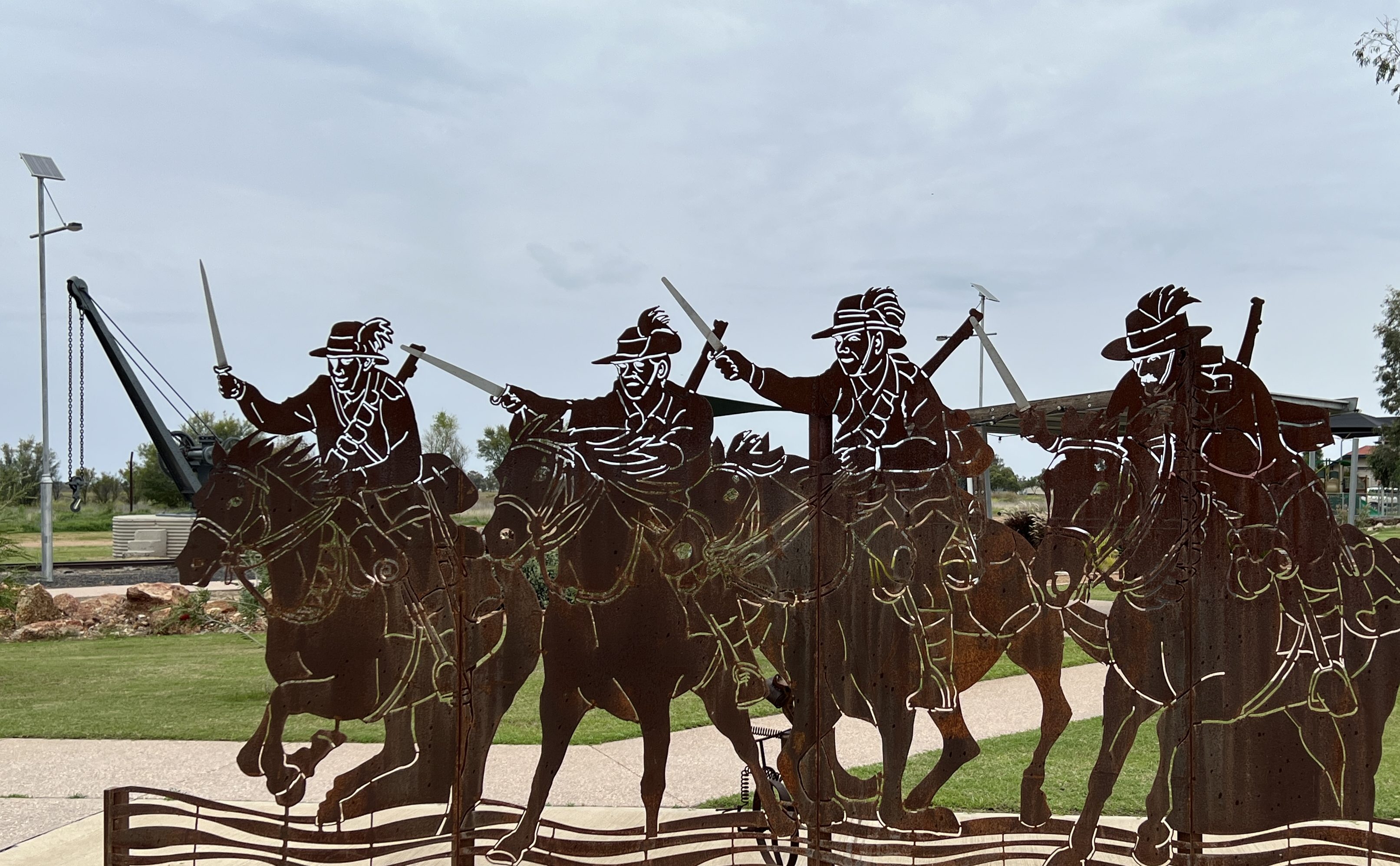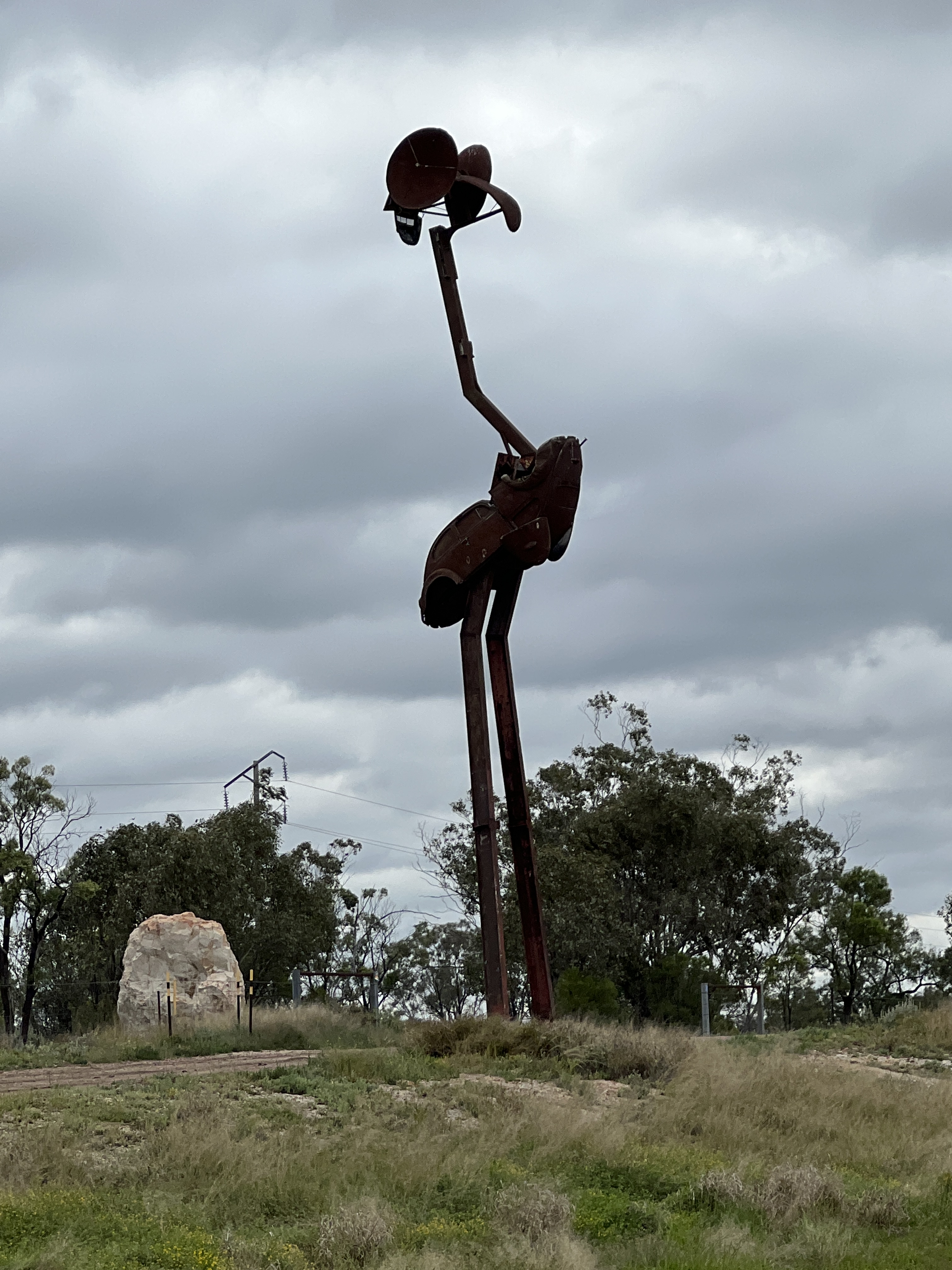 Next town along the way and further west is Dirranbandi. Stopped here for morning tea and had a look around their attractions. These included a great cut out of horses of the Australian Light Horse brigade, which made the last cavalry charge at Beersheba towards the end of the First World War. The General that lead the charge later acquired a property at Dirranbandi and grazed here until he died in 1939. Our towns out west certainly search far and wide to pick up and promote historical slices for their tourist propaganda!